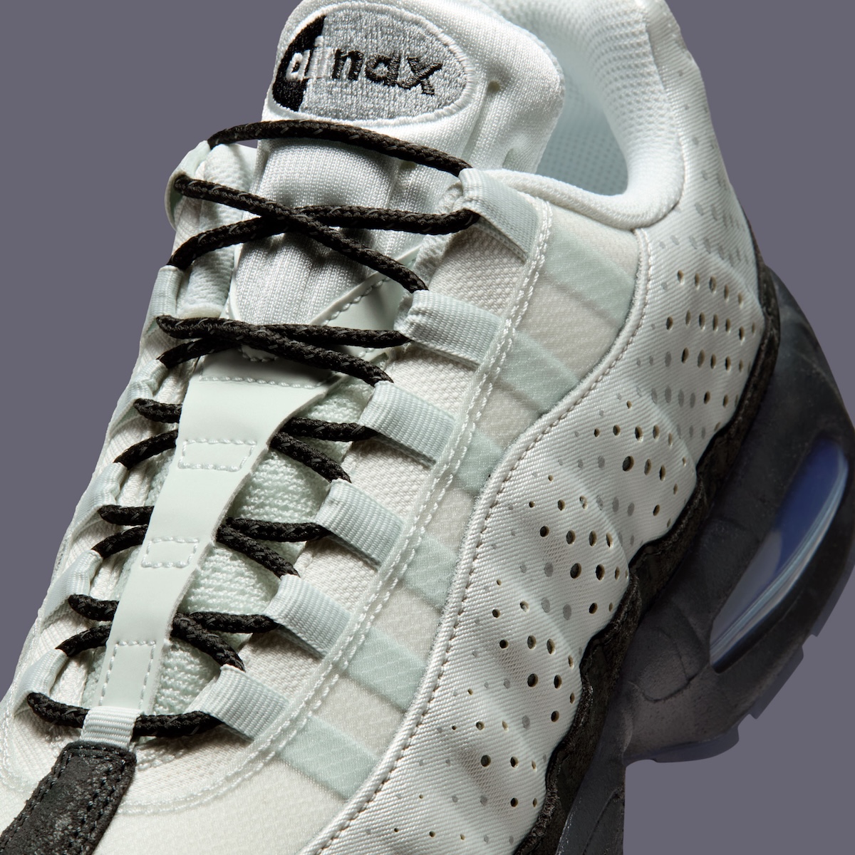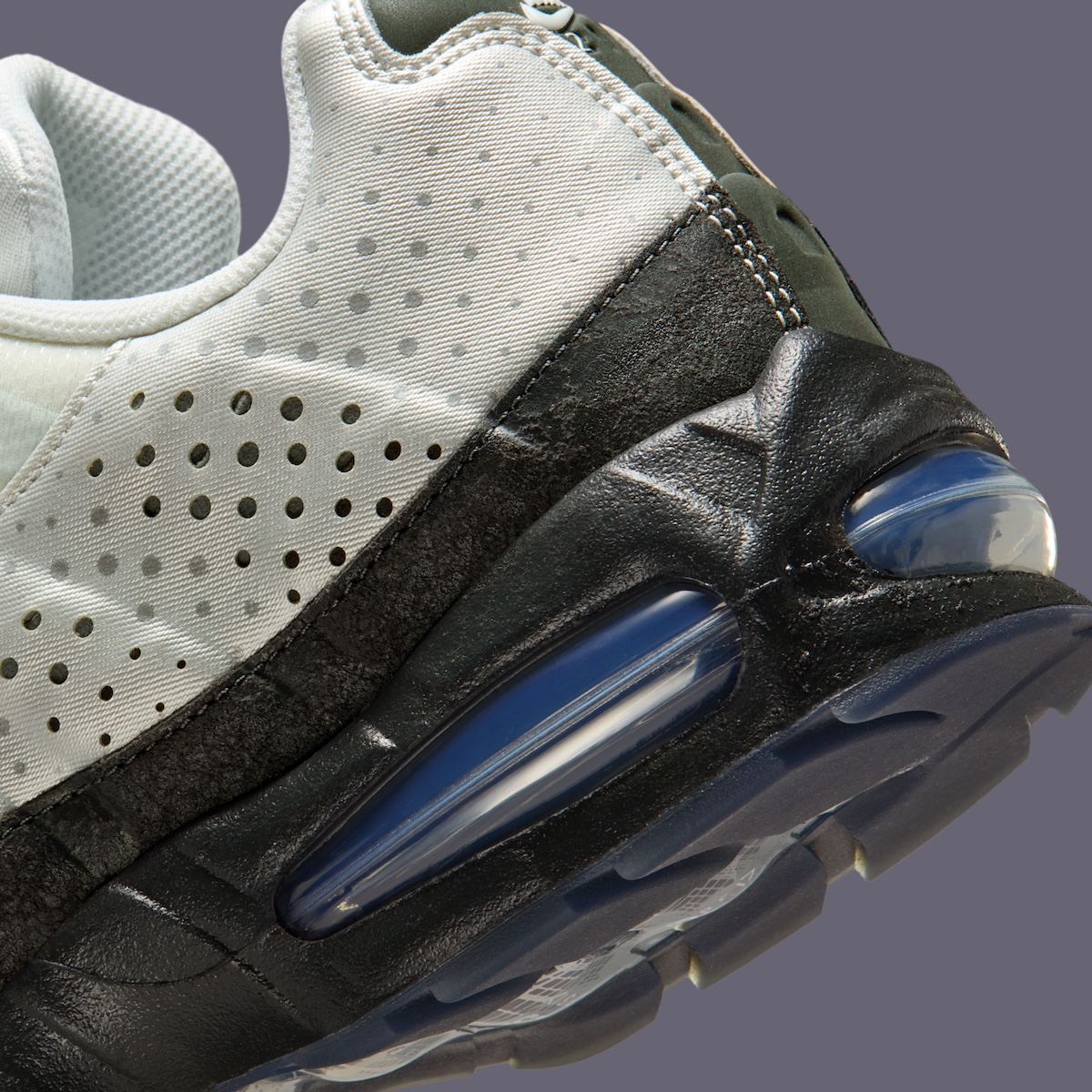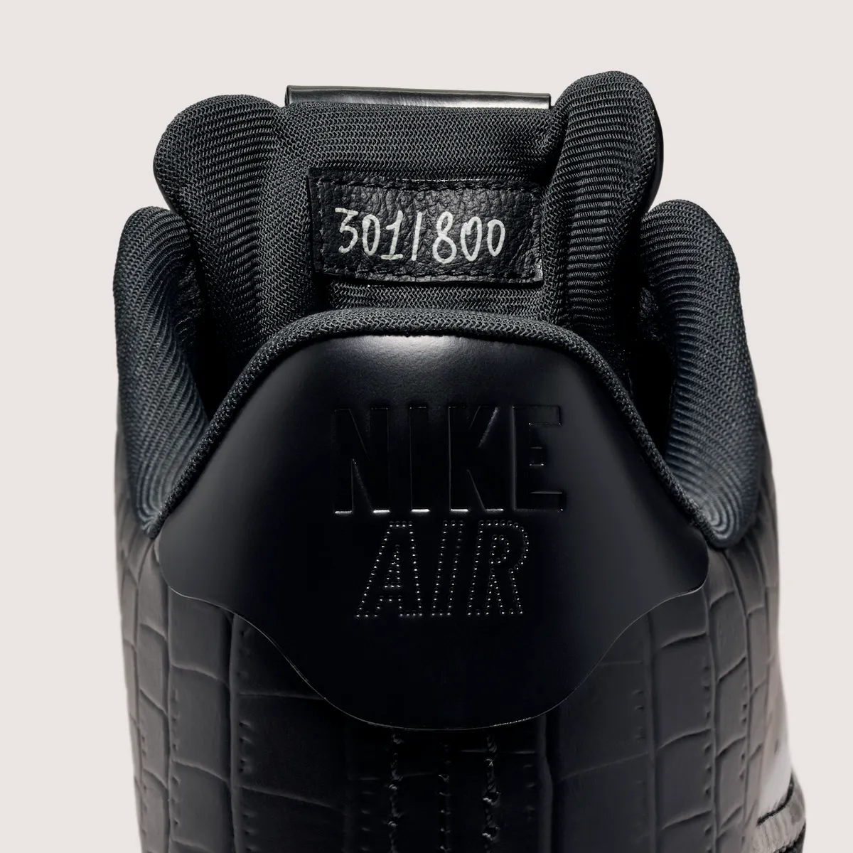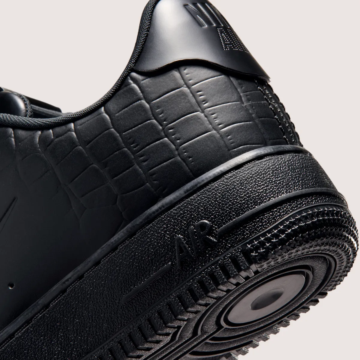 Glossy “Black” and “College Grey” patent leather dominates, but the construction is what shifts the conversation. Instead of stacked panels, the toe, sidewall, and heel flow as a single, clean piece, interrupted only by tiny debossed Swooshes and a stitch-free back tab. A subtle croc embossing appears toward the rear, recalling the sought-after 2007 “Crocodile” edition without trying to replicate it, while an all-black leather tongue and toe keep the look disciplined.