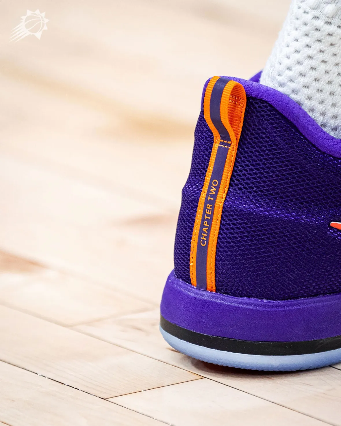 Phoenix energy runs through the entire design, making this one of the more natural PE colorways tied to Booker’s on-court identity. The mix of purple and orange is instantly recognizable, and the low-cut shape keeps the model in line with the sleek performance look that helped make his first signature shoe such a hit.