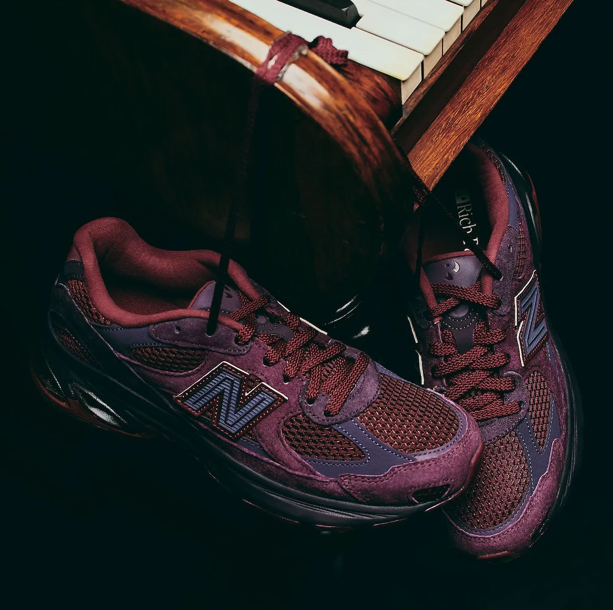 The New Balance ABZORB 2010 is the centerpiece of the collection. It’s a clean silhouette that references early-2000s performance trends with contemporary details. The segmented ABZORB midsole provides depth and comfort. Layered leather and diamond-knit mesh offer structure, and plum and burgundy tones set a mellow mood. It’s present without trying to be flashy.