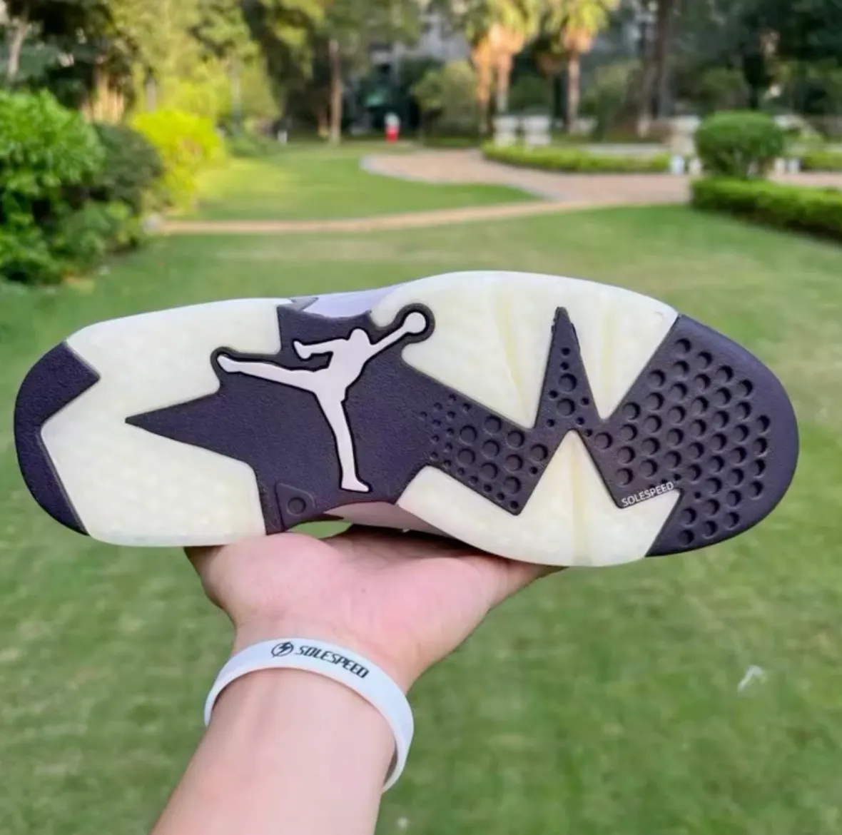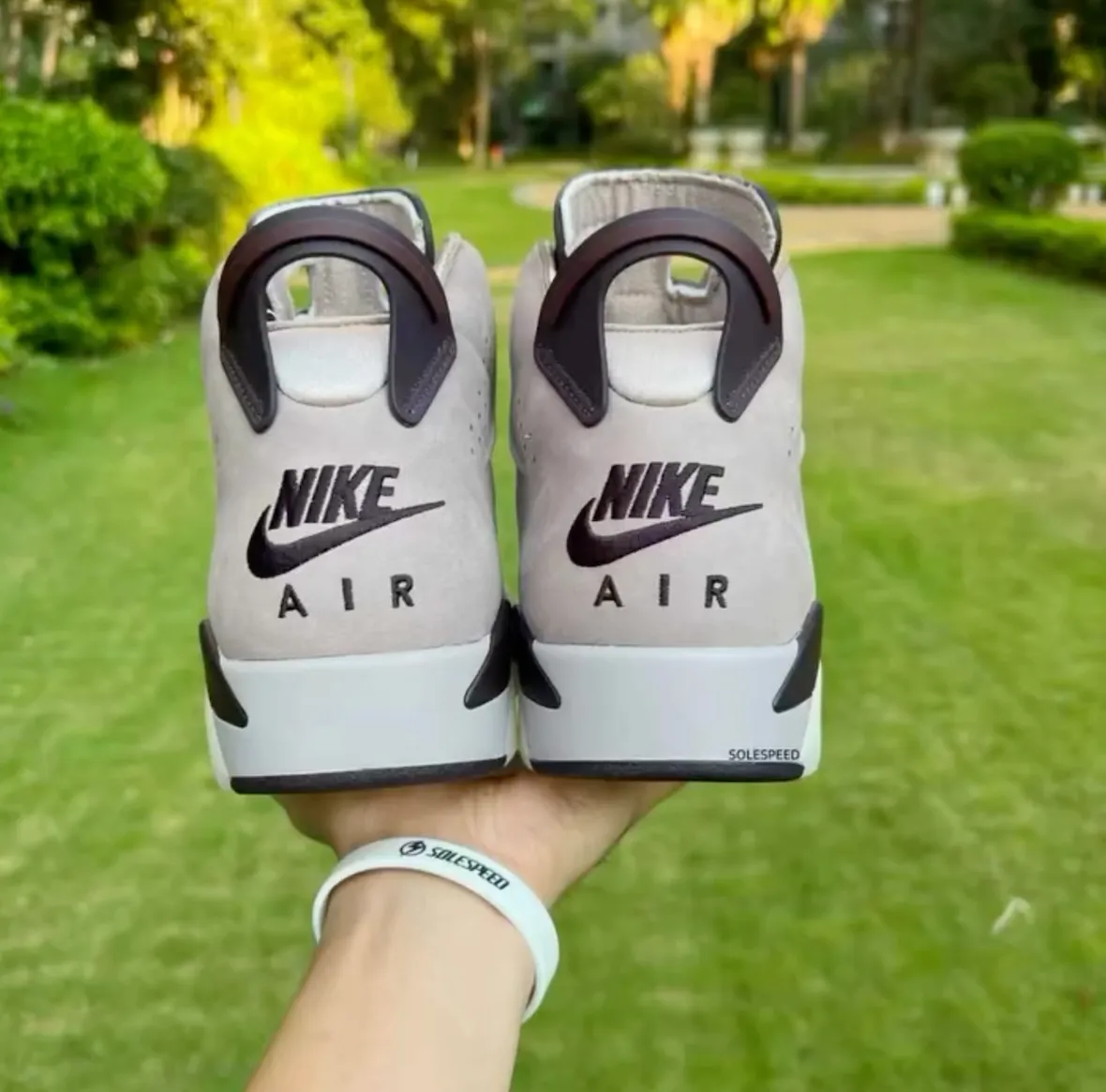 The shoe’s soft, premium construction is paired with darker accents on the heel tab, lace toggle, and midsole, adding depth to the understated color palette. Classic AJ6 details, including perforated panels, visible Air cushioning, and a milky translucent outsole, keep its heritage intact. Inside, a quilted lining and co-branded insoles highlight the brand’s signature luxury touch.