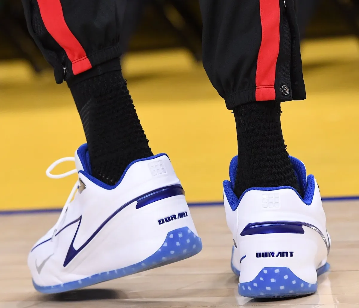 Kevin Durant pulled out one of his cleanest Nike Basketball exclusives yet when he debuted this new Nike KD 19 PE in white and blue. The colorway immediately called back to the Air Jordan 18, the model Michael Jordan wore in his final NBA game on April 16, 2003, giving Durant’s latest on-court pair a connection to one of the most important sneakers in basketball history.