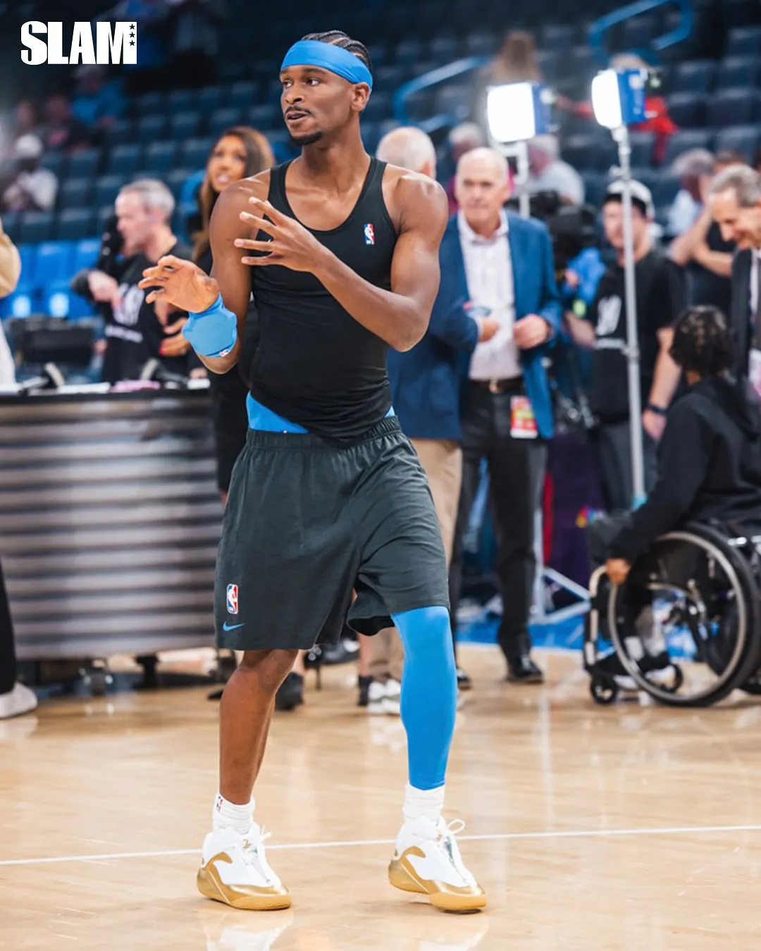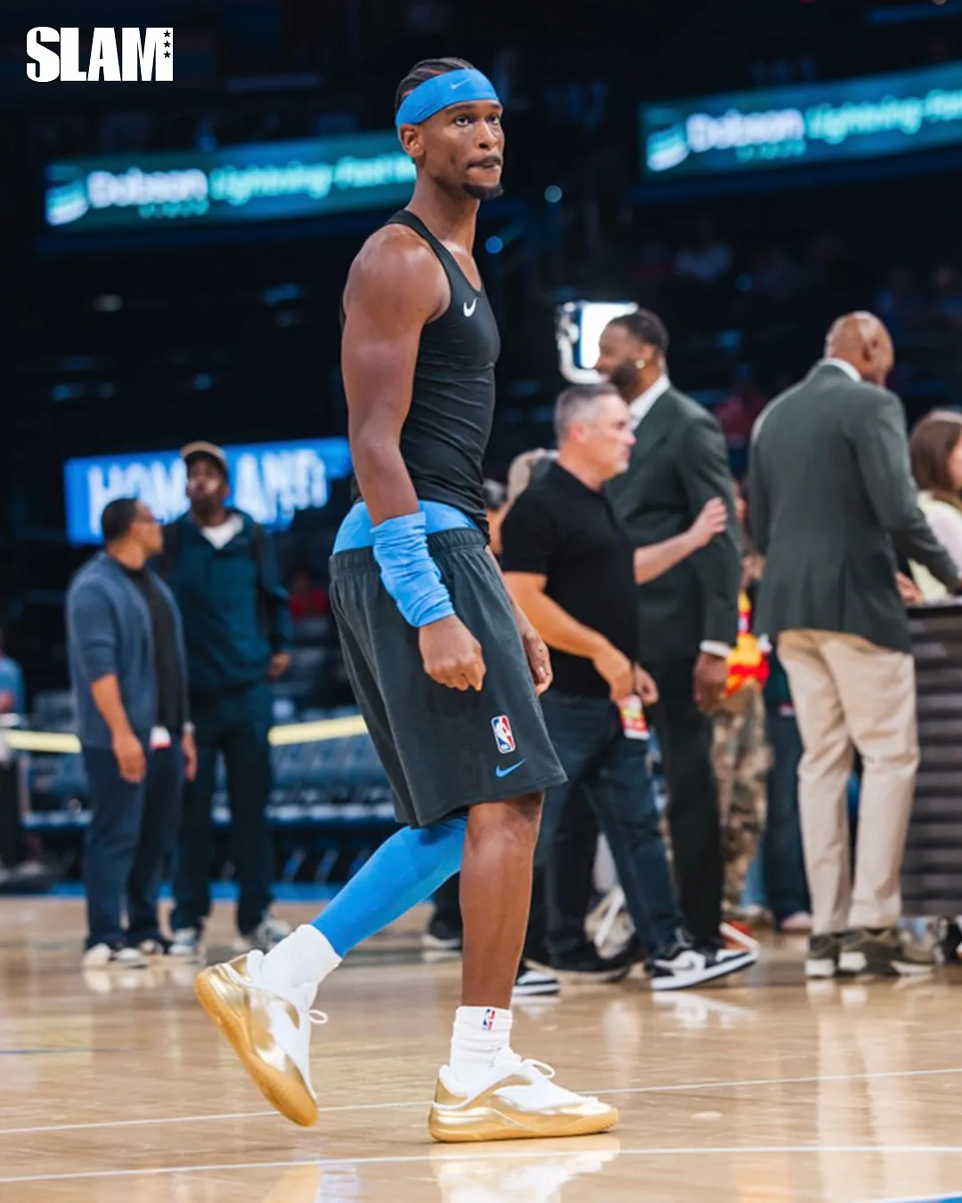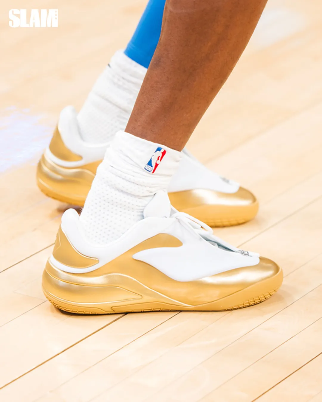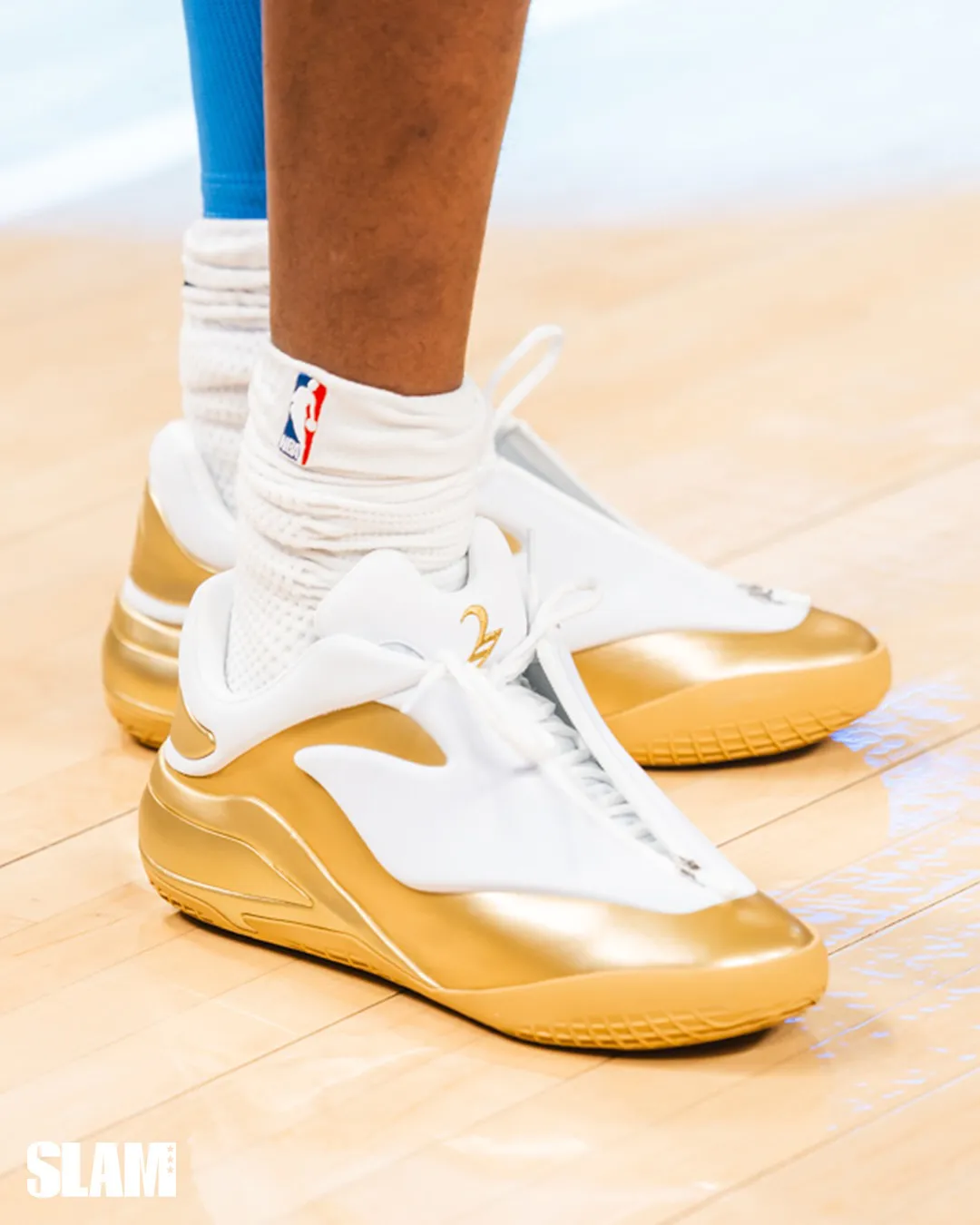 This special edition builds on the gold version SGA wore during last season’s celebration, now featuring a refined mix of metallic gold and white. The sleek neoprene upper contrasts with sculpted gold overlays that shine under arena lights. His signature “SGA” logo appears in gold embroidery, symbolizing both confidence and craft — the same traits that have defined his rise.