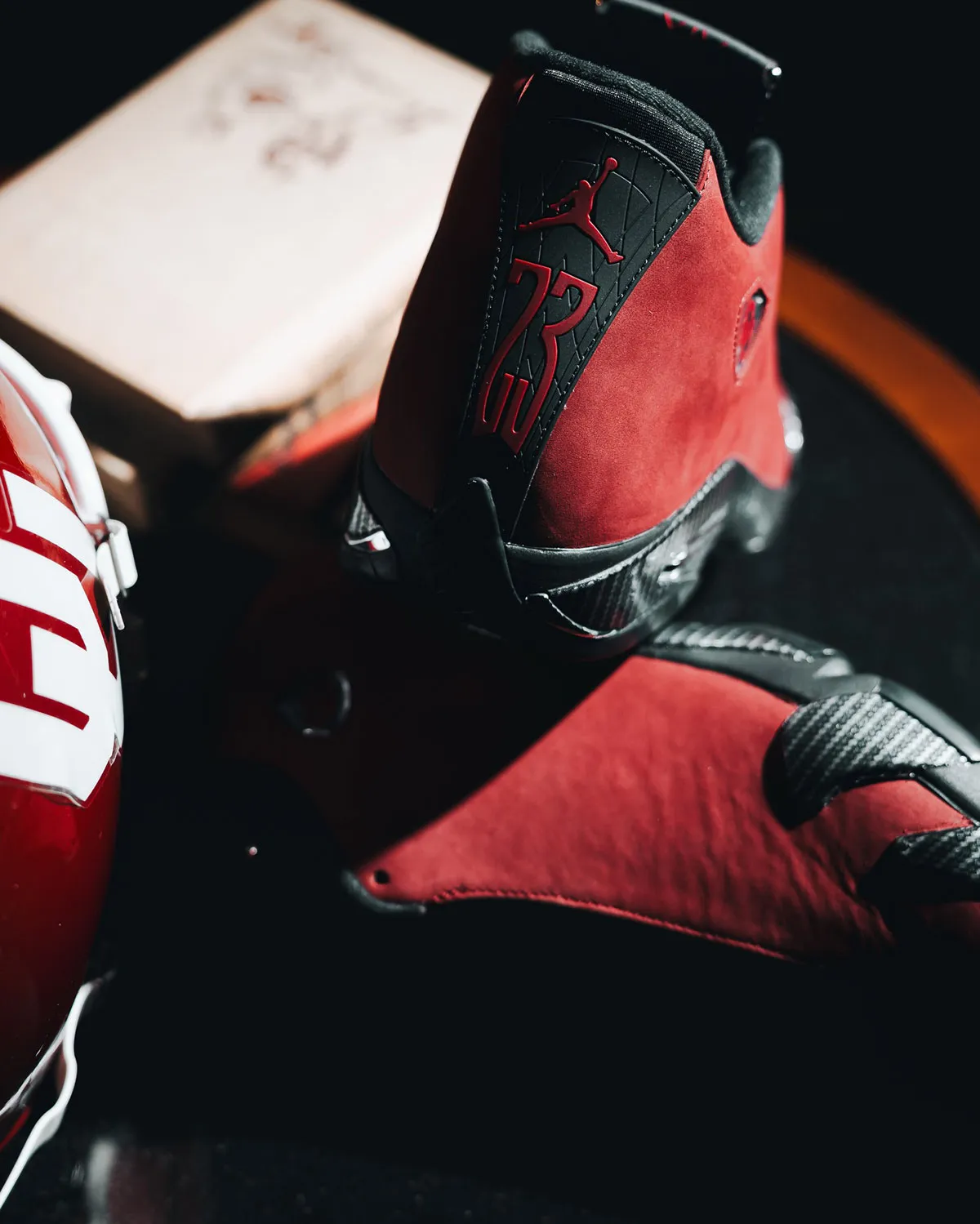 The Air Jordan 14 is not a retro Jordan PE that shows up often, which is part of what makes this pair stand out. Jordan Brand usually spreads that PE energy across more predictable models, but this Oklahoma edition shows how well the 14 still works when the right colors and materials are involved. Between the rich suede build and the sharp black accents, this is the kind of team issue pair that easily could have drawn interest beyond the program.