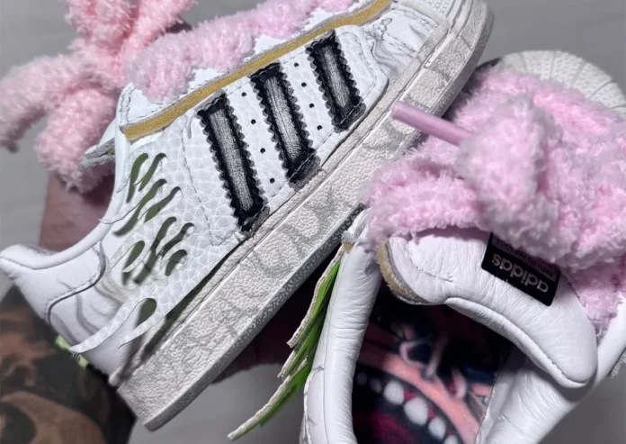 Hellstar founder Seanie has teased a toddler-sized version of the brand’s adidas Superstar, bringing the label’s signature look to a much smaller pair. The mini shoe appears to mirror Hellstar’s debut Superstar colorway, keeping the same chaotic energy that helped the original release stand out.