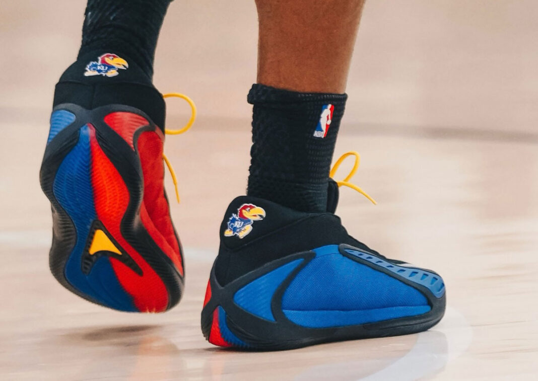 Energy around college hoops in Lawrence continues to carry into footwear, with Kansas Basketball showcasing a new player-exclusive tied to its adidas partnership. Shared through the program’s social channels, the adidas Anthony Edwards 2 “Kansas Jayhawks” PE surfaces as another school-driven take on the rising signature model.