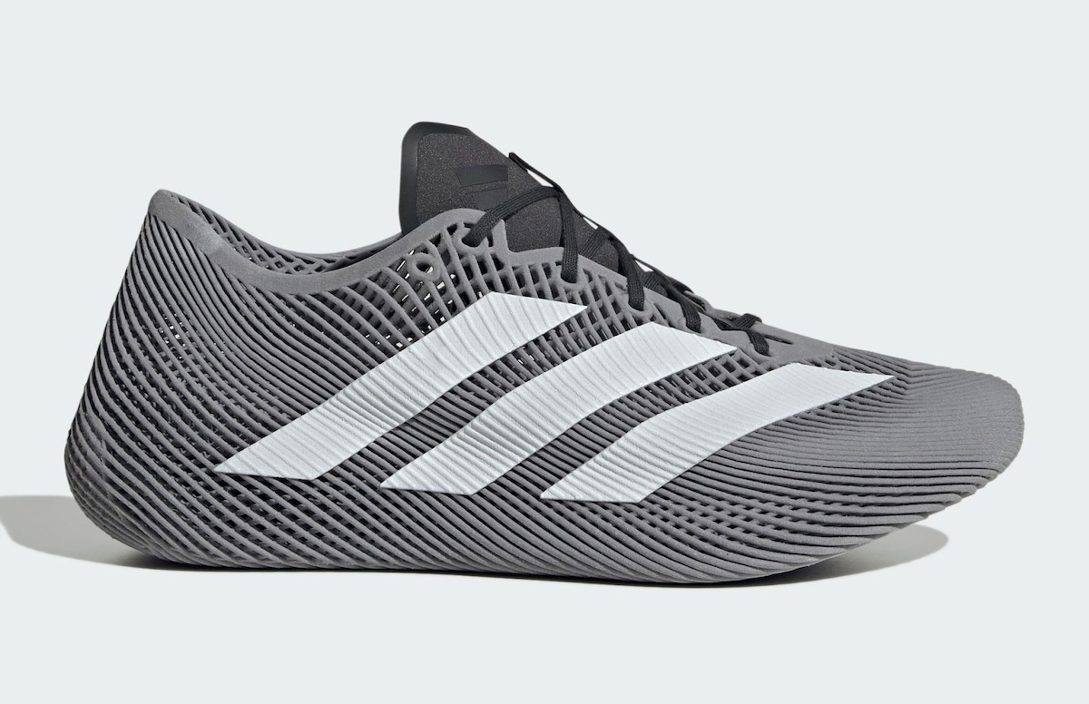 A single latticework upper wraps the foot in multidimensional lines that mimic being sculpted in 3D. Ventilation gets shoutouts from open grid windows exposing the forefoot and midfoot. The Grey/Carbon color scheme keeps everything tonal and sharp. Three Chalk White stripes run laterally down both sides with just enough texture to feel built in.