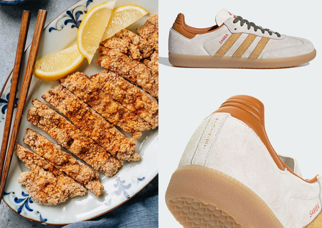 Elements of red “SAMBA” branding and olive-green laces contrast the ensemble, and tan leather collars and gold “Taipei” lettering pay homage to the local area. Chicken-inspired graphics inside the tongue and on the insole further elevate the subtle tribute to Taiwan’s culinary scene. Included extra laces are included for customization, giving wearers the option to switch it up for a “different flavor.”