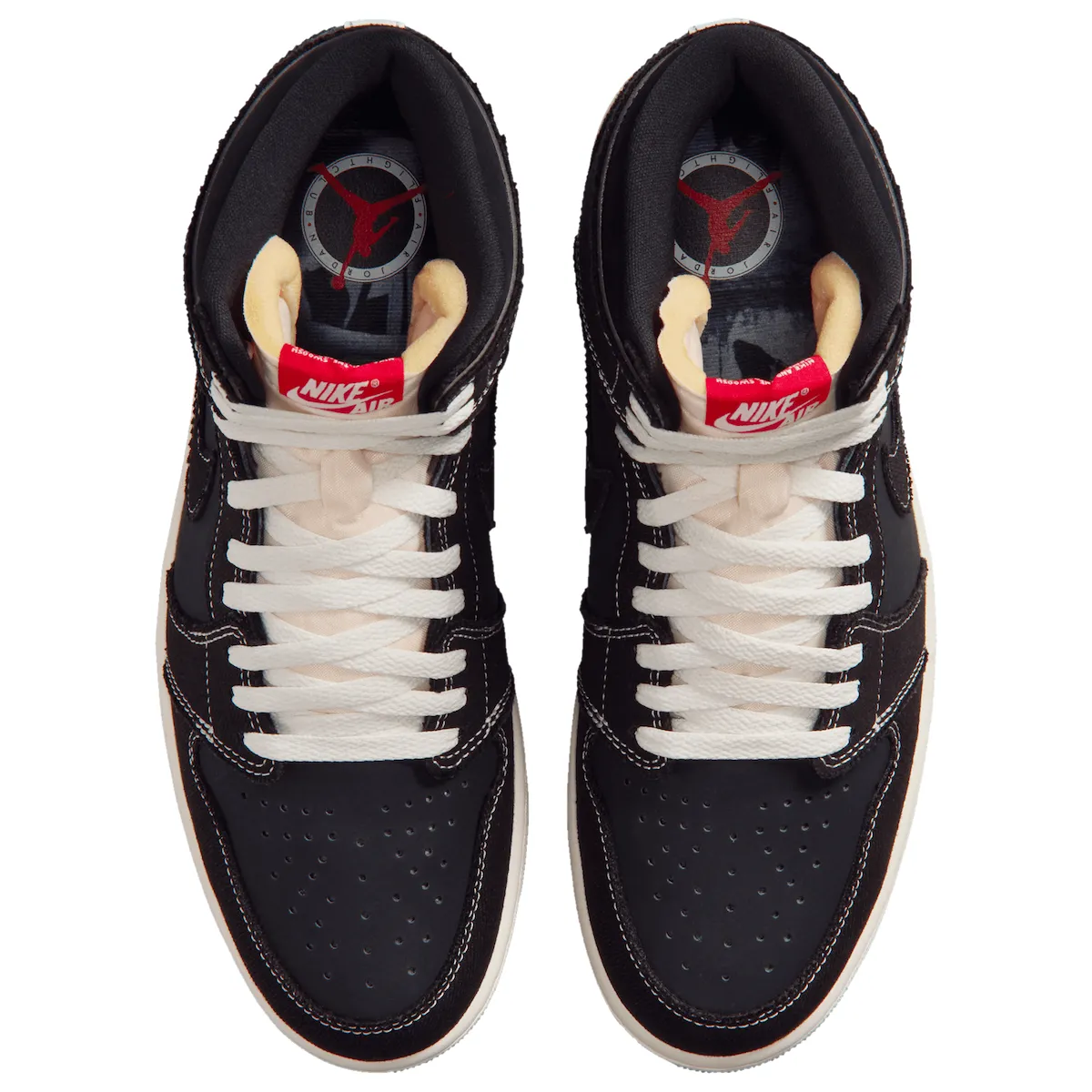 This Air Jordan 1 arrives with a layered mix of black denim and nubuck, giving the upper a textured, premium feel. Reflective detailing traces the overlays and Swoosh, adding subtle shine against the dark base. Hits of University Red land on the Wings logo and Nike Air tongue branding, while a Sail tongue and midsole bring in a slightly aged, vintage touch. Inside, the design continues with a standout “Air Jordan Flight Club” insole graphic, tying the theme together. A gum rubber outsole finishes the look with a classic, wearable edge.
