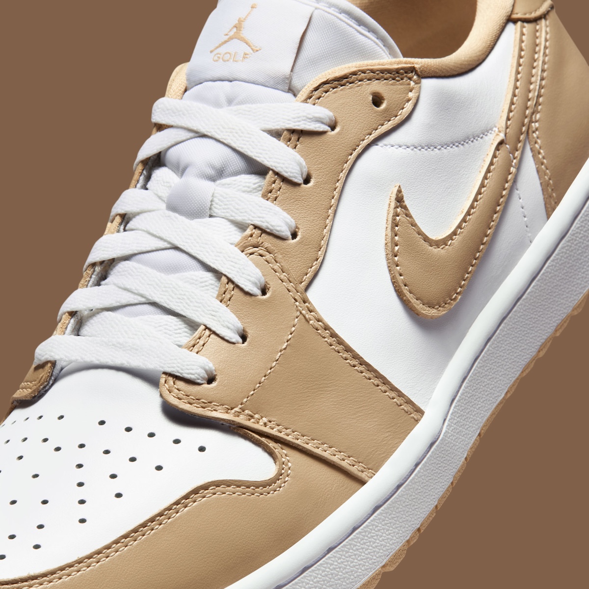 White leather sets a clean foundation, while Linen overlays soften the silhouette. The tan hue feels familiar, echoing past Jordan 1 tones that age well. It’s the kind of colorway that works beyond the scorecard.