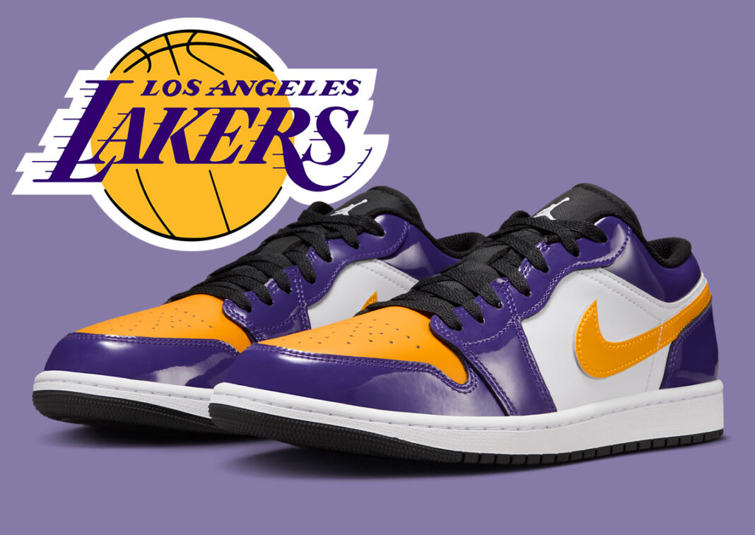 The Air Jordan 1 Low “Lakers” brings Los Angeles energy to a classic silhouette with bold polish and clean balance. Court Purple patent leather sets the tone, while University Gold and crisp white shape the familiar Lakers identity.