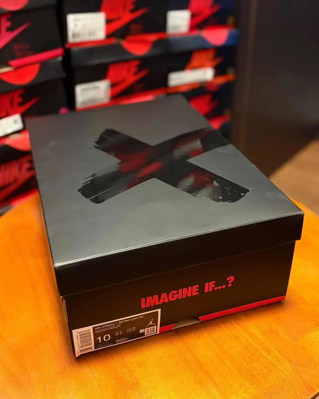UPDATE 1/10/26: A detailed look at the Air Jordan 1 Low OG “Banned” shows the return of the iconic X branding, special “Banned” packaging, and insoles honoring the 1984 NBA ban story. Extra red and white laces are included, finished with “IMAGINE IF…?” on the aglets. The pair releases May 16th, 2026 in full family sizing.