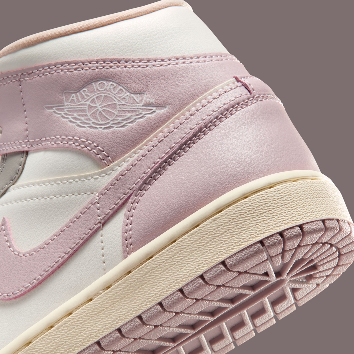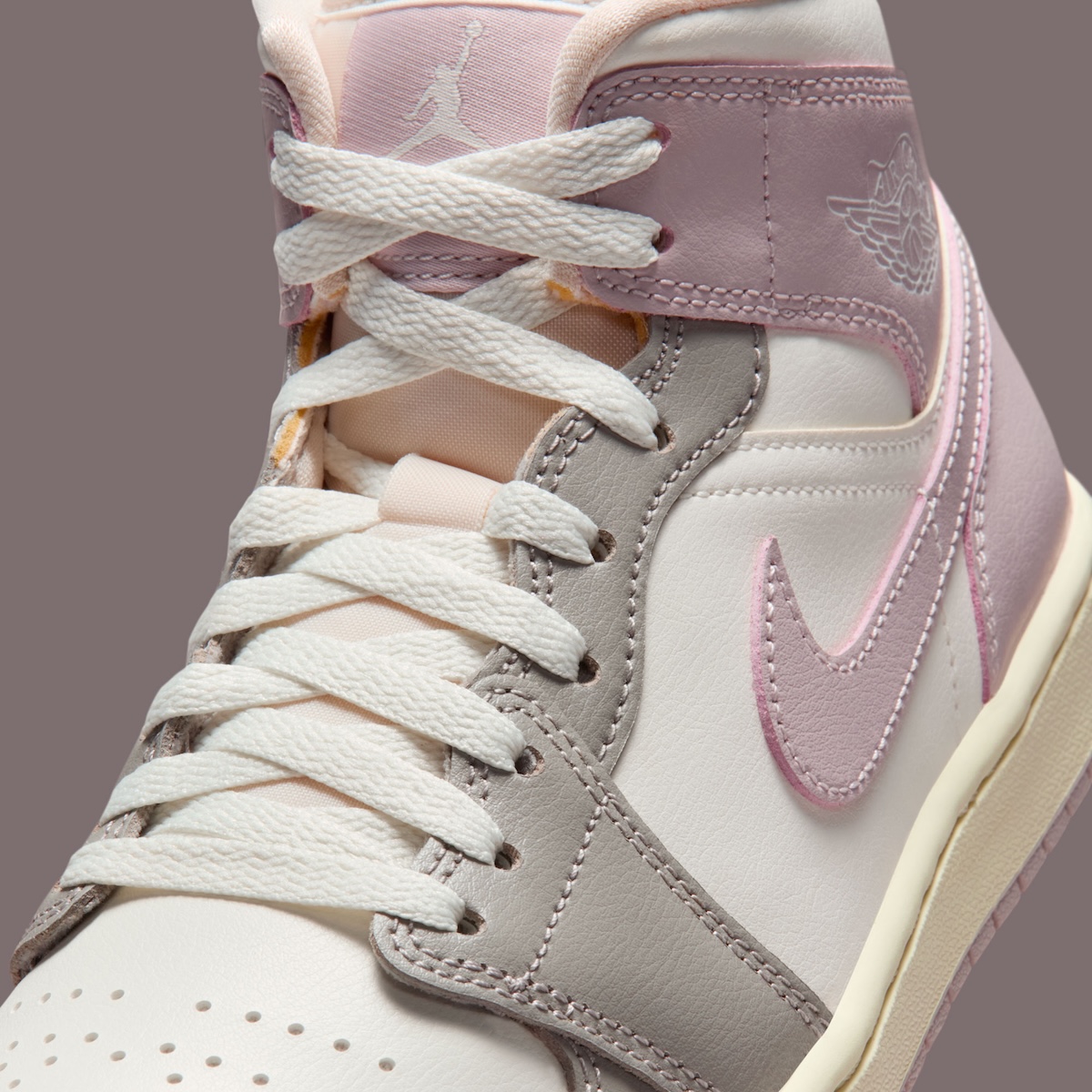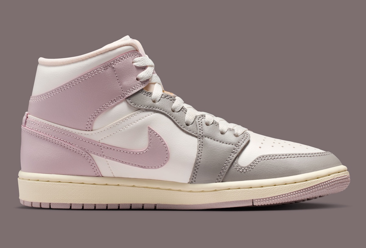 The Air Jordan 1 Mid “Enigma Stone/Particle Rose” releases Spring 2026 for $125 at Nike.com and approved Jordan Brand stockists.
