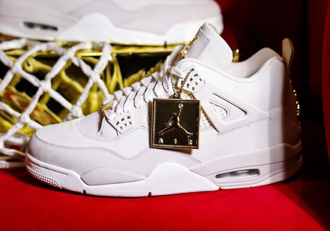 The Air Jordan 4 Cincinnati Bearcats PE boasts an elegant off-white leather upper. This clean design is complemented by Metallic Gold accents on the Jumpman logos, lace tips, and hangtag, adding a premium feel. Diamond-inspired details, similar to the First Class Air Jordan 4 gifted to WNBA players in 2024, enhance its exclusivity. The Bearcats logo appears on the lace dubrae, giving a personalized touch that connects the shoe to Cincinnati’s basketball legacy. A custom hangtag featuring the team’s branding further strengthens this connection. Inside, the tongue displays a bold red tag with “GOATS” stitched in capital letters, a tribute to the university’s elite status in college basketball.