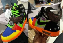 This is the first Air Jordan “Hare” release, which will be followed by the Air Jordan 7. This Air Jordan 1 Mid is dressed in a Light Silver, White, Black and True Red color scheme. Some of the highlighted features include the Bugs Jumpman logo on the tongue, the printed styled tongue and ‘Hare’ wording located on the back heels.