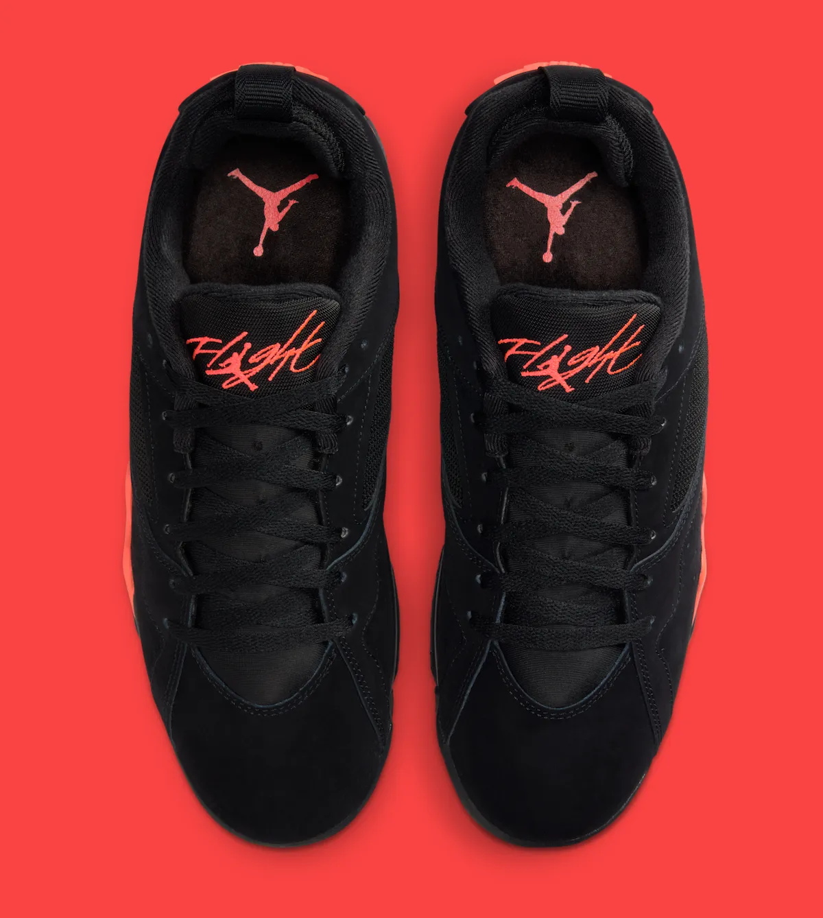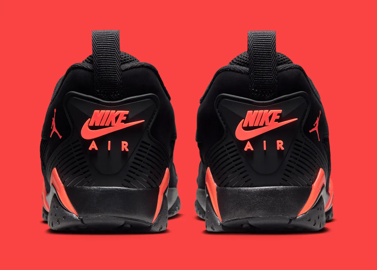 The black suede will be surprisingly soft, and the mesh panels break up the upper without killing the shape. Then you get those sharp infrared hits on the midsole, straight out of early-90s Jordan design language. The Flight script on the tongue adds a little nostalgia without looking forced. It just works.