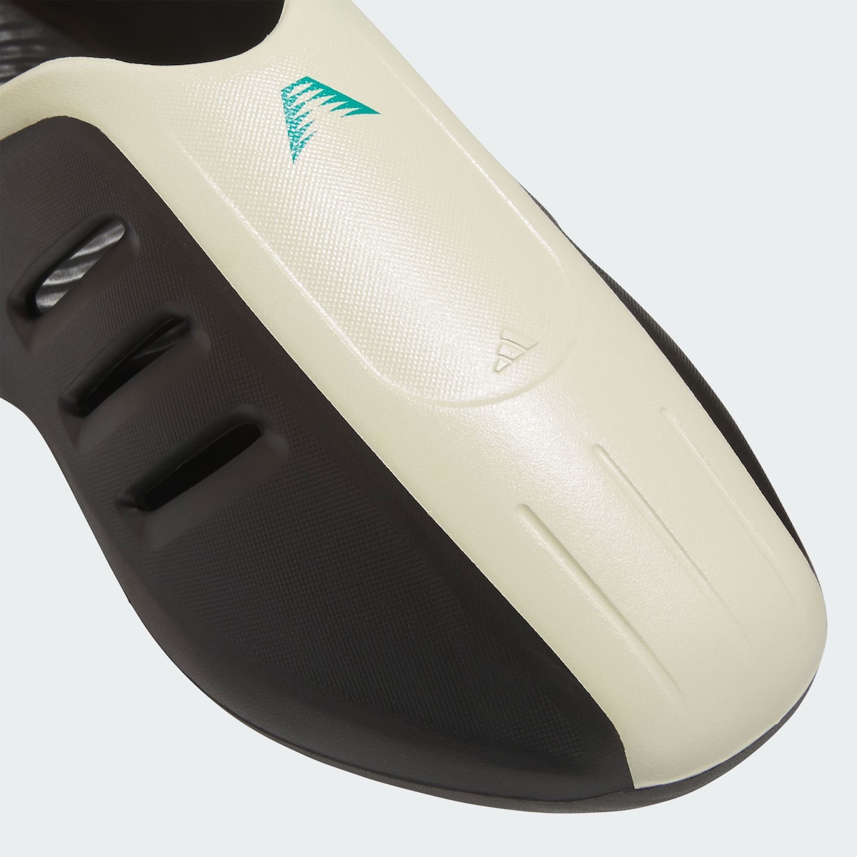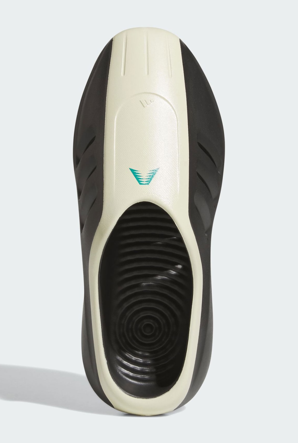The upper features deep midfoot vents that nod to classic adidas design cues. These cuts add airflow while giving the mule a surprisingly athletic feel. A Cream forefoot panel adds crisp texture, and the ripple outsole delivers grip with a unique visual pattern. Subtle branding, including Edwards’ teal logo, keeps the design clean.