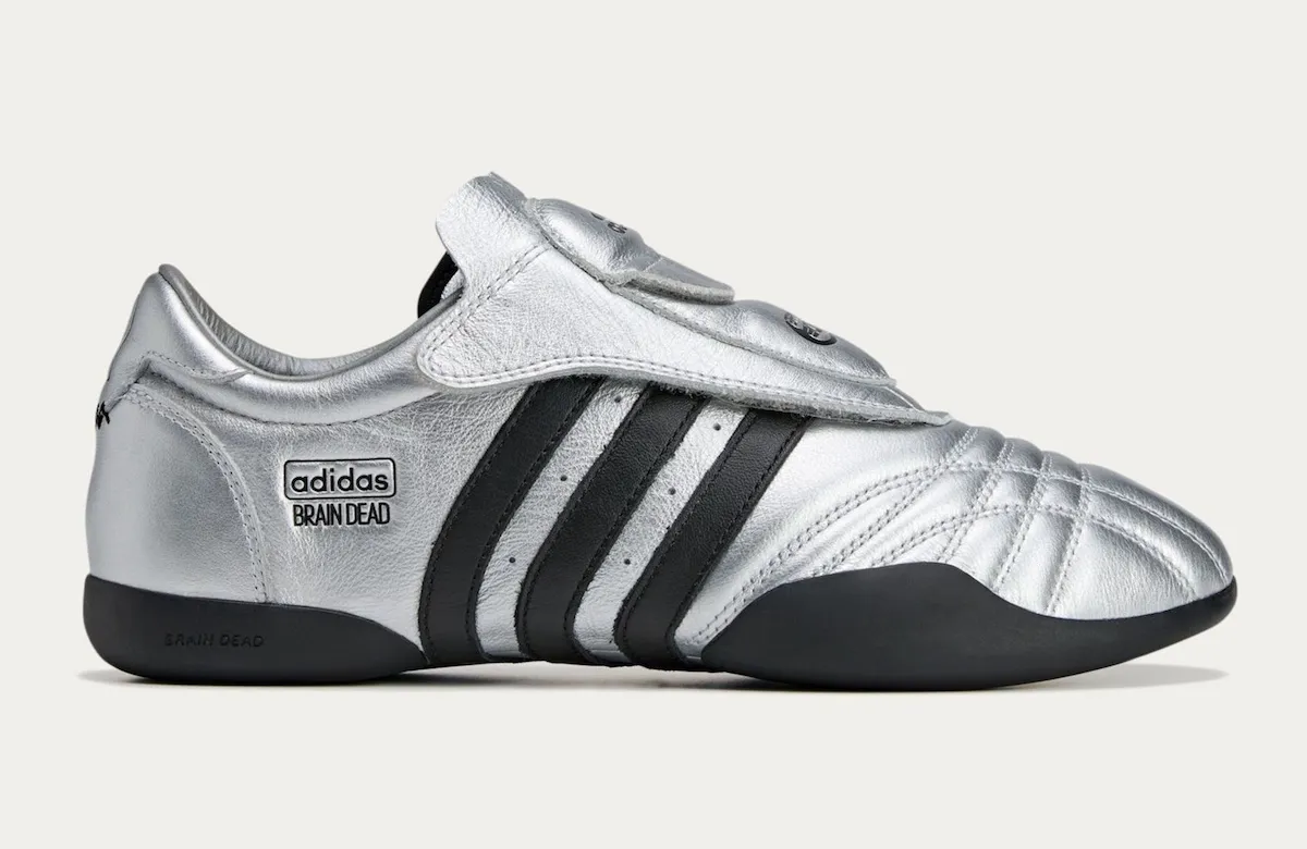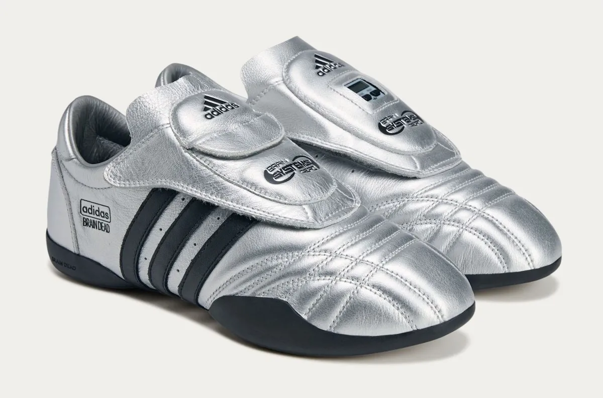 Two footwear models headline the capsule. The Climacool 2 features metallic vents, reflective green mesh, and bright yellow accents for a retro-futuristic spin. Meanwhile, the Taekwondo Mei keeps things understated with a black upper, clean white stripes, and an off-white sole. Both pairs mirror earlier Brain Dead collaborations that blended archival storytelling with modern tweaks.