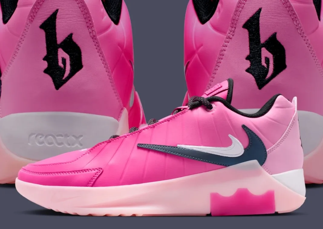 Visually, the pair leans into a bold, high-visibility pink upper, contrasted by black detailing through the lining and laces. A dual-layer Swoosh setup runs along the lateral side, combining dark navy and white for added depth. On the tongue, the LeBron Witness branding remains intact, while the toe features “bronny” embroidery in a gothic-style font, reinforcing the personal storytelling baked into the design.