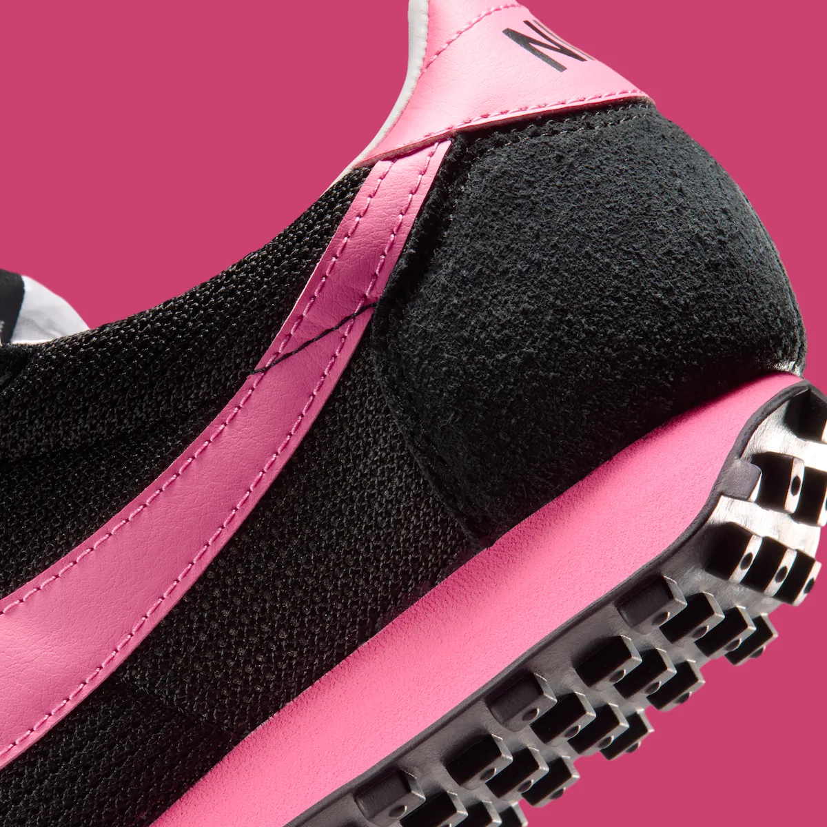 The black mesh upper sets a restrained foundation, with suede at the toe and heel giving the shoe structure and depth. Spirit Pink appears only where it matters most, coating the Swoosh and midsole in a way that feels deliberate and precise. It adds personality without overpowering the design, keeping the balance intact. White laces and the waffle outsole anchor the shoe in its running heritage.