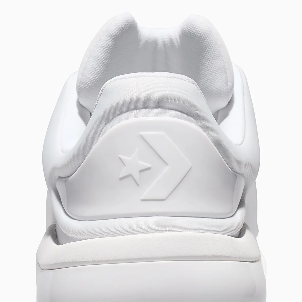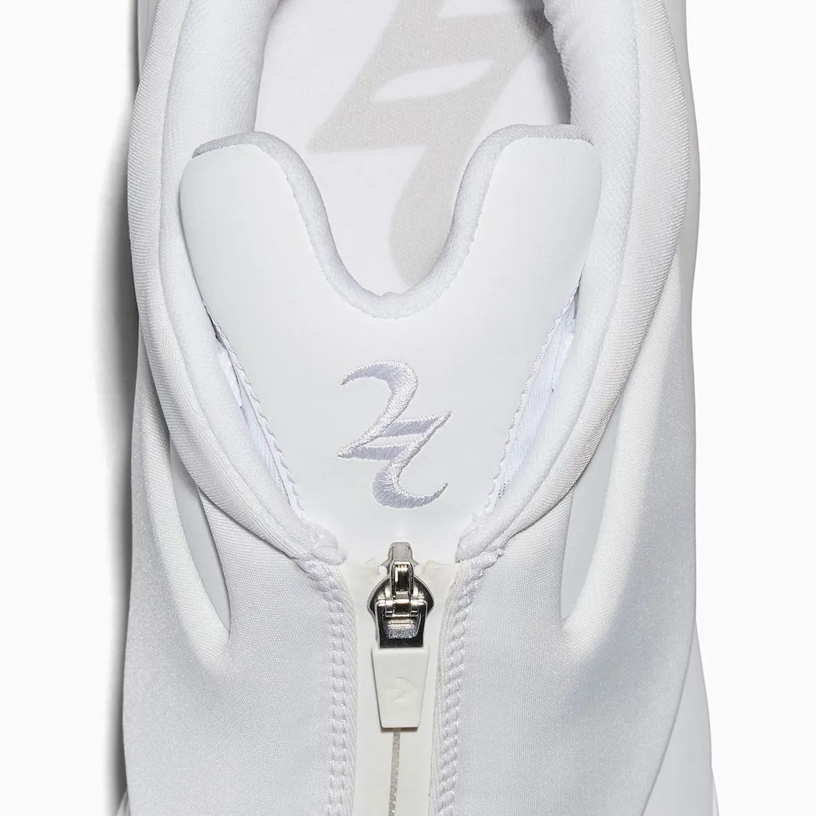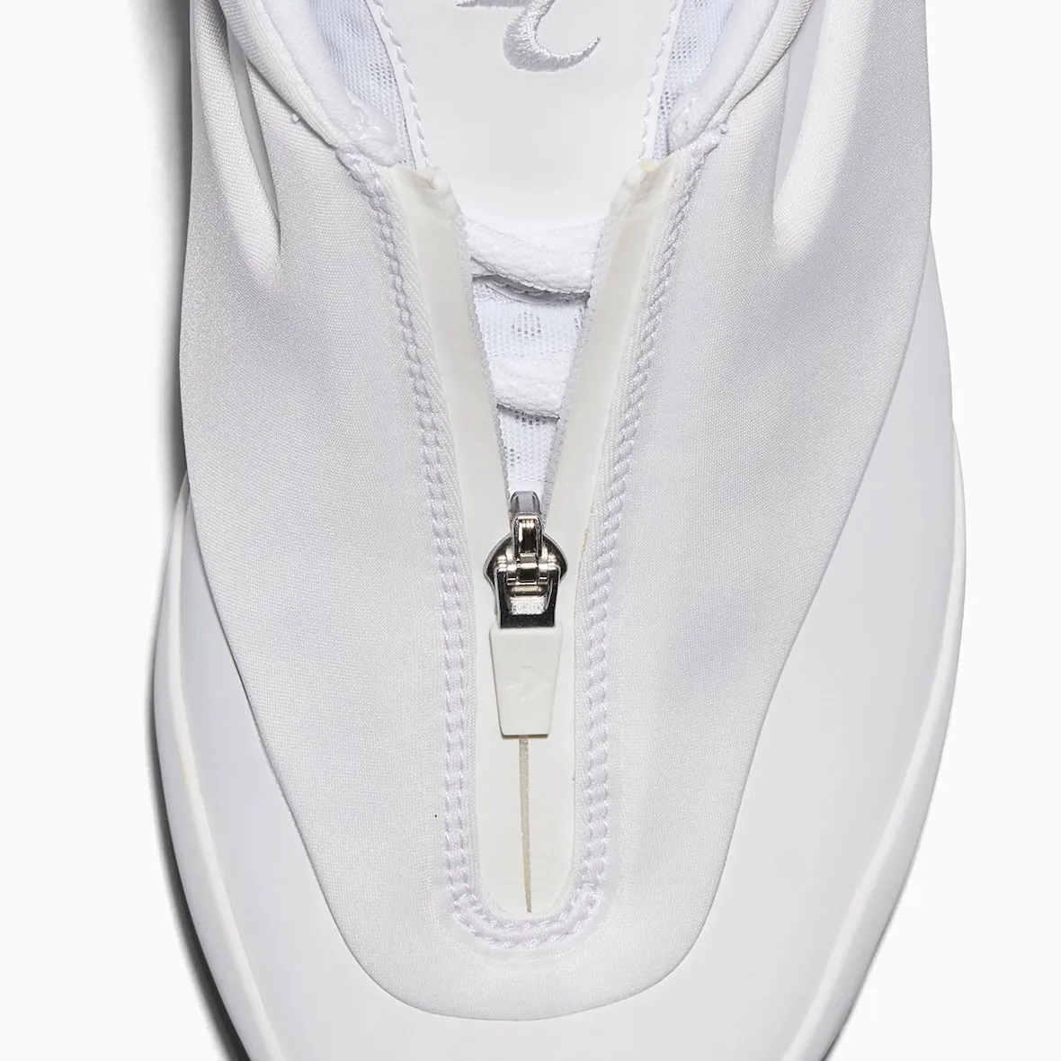 This Converse SHAI 001 keeps the same performance-focused build that defined the original launch. The upper, midsole, and outsole arrive in uniform white, allowing the sculpted lines and zippered shroud to stand out naturally. As a design choice, the triple-white finish highlights the silhouette’s modern shape instead of masking it with contrast.