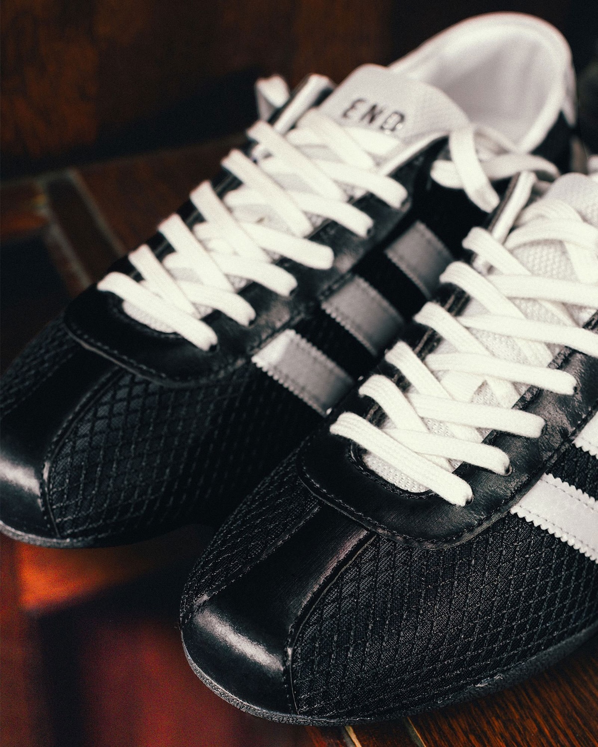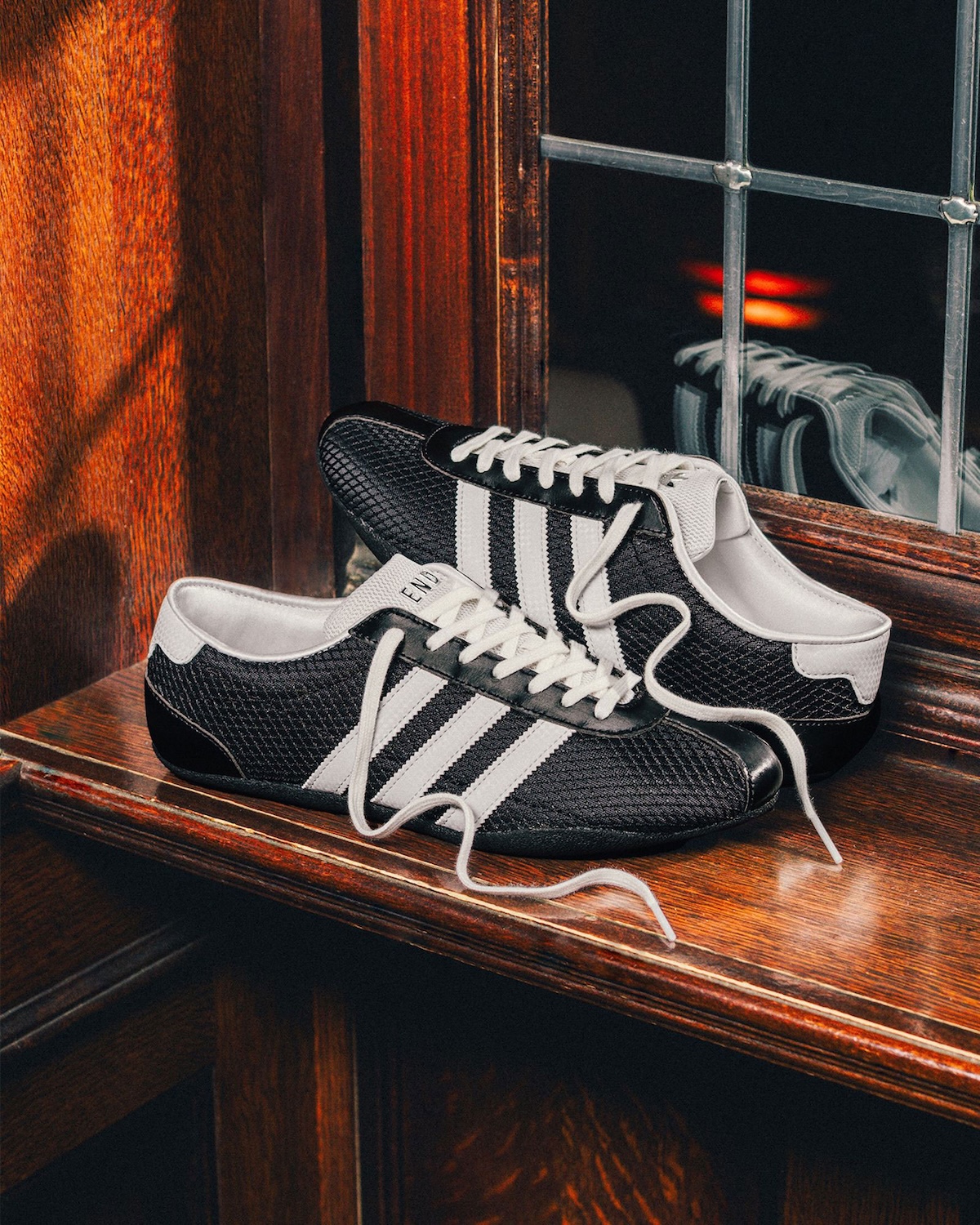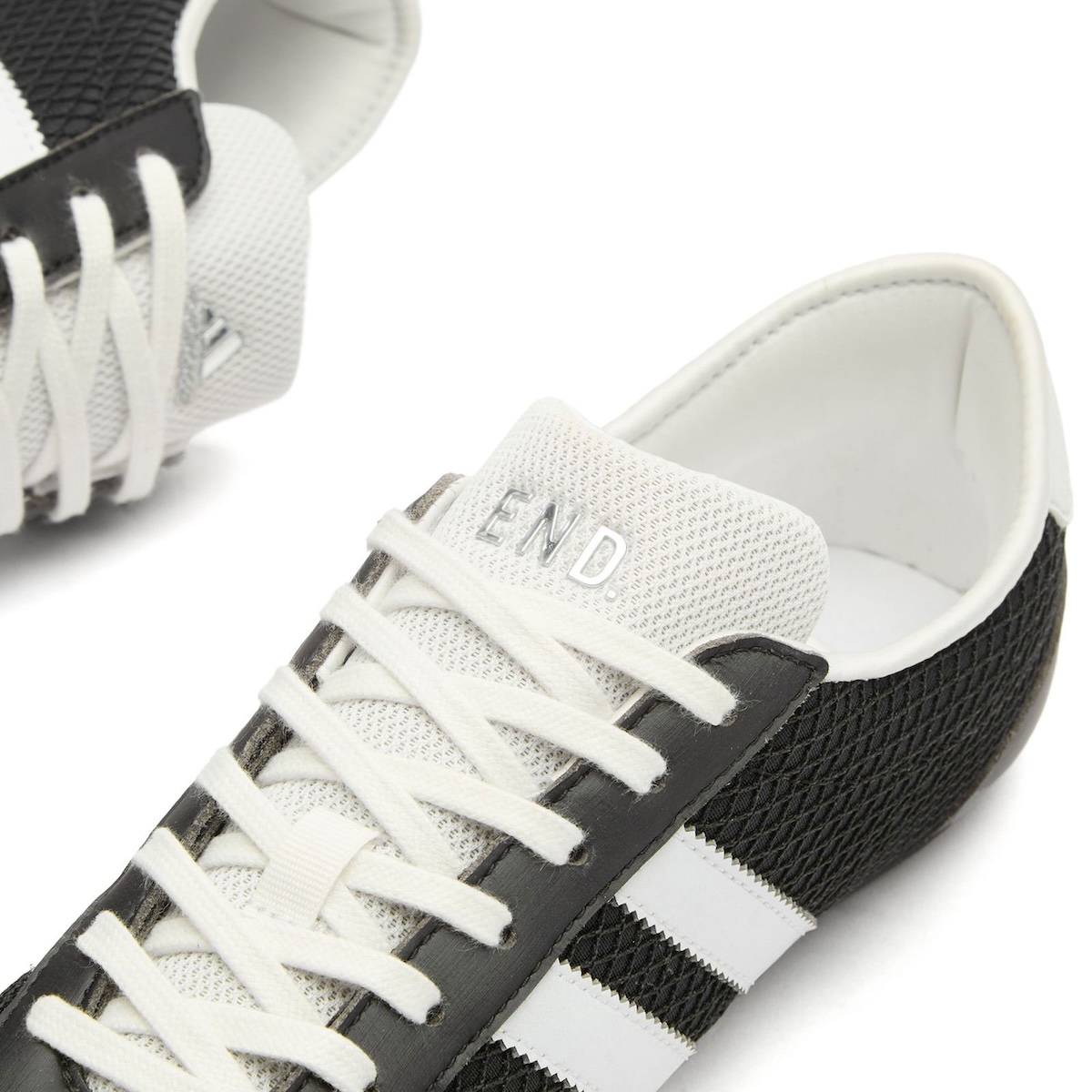 The upper blends black satin and open mesh for a soft sheen, while the white leather 3-Stripes and matching tongue deliver crisp contrast. END. branding hits the tongue and insoles, quietly marking two decades of collaboration between the UK boutique and adidas Originals. It feels tailored—not loud—something you’d catch on someone who knows exactly what they like.