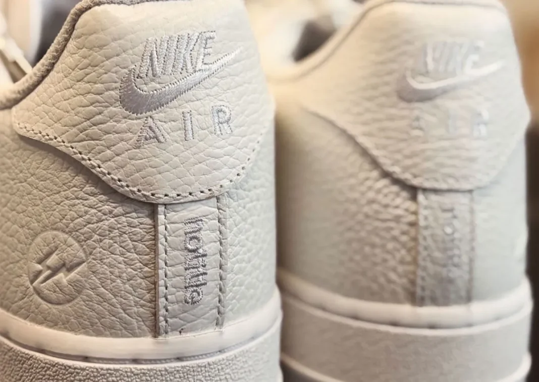 The sneaker itself keeps things premium and understated. It features a full tumbled leather upper, giving the classic Air Force 1 a more refined, luxury feel. Although only a teaser has surfaced, the heel branding tells the full story. Nike Air and NoTitle logos appear in a clean metallic finish, while Fragment’s signature double lightning bolt sits alongside them, tying all three collaborators together.