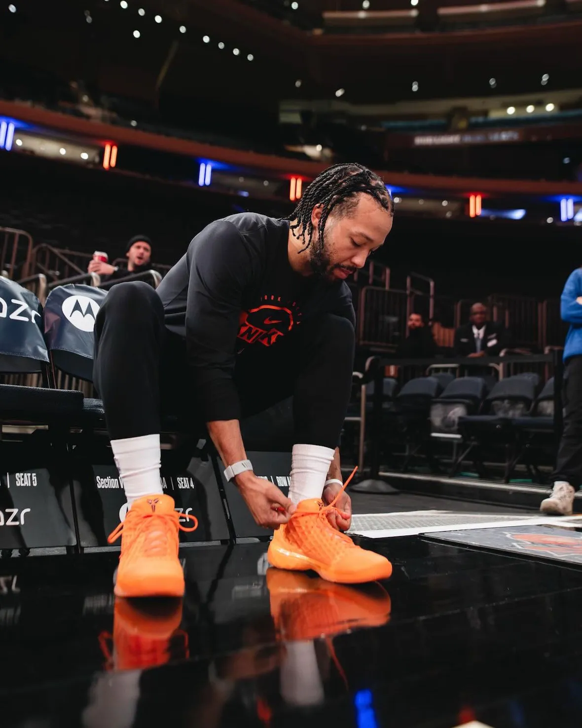 The Nike Kobe 3 Low Protro keeps the model’s reputation for speed and efficiency intact. The low-cut form sharpens its original design language and emphasizes court feel. Brunson’s pair stands out in a vivid Knicks orange, balanced by deep blue Swoosh accents that keep the colorway clean and intentional.