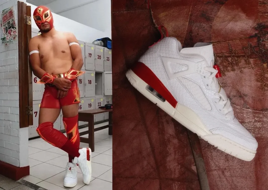 UPDATE 8/29/25: Jordan Brand has released the campaign images for the Jordan Spizike Low “El Vuelo.” The sneakers are inspired by lucha libre wrestlers in Mexico City, as the glossy and textured accents were influenced by traditional wrestling masks. Dedicated packaging based on retro-inspired lucha posters also complements the release set for September 16, 2025.