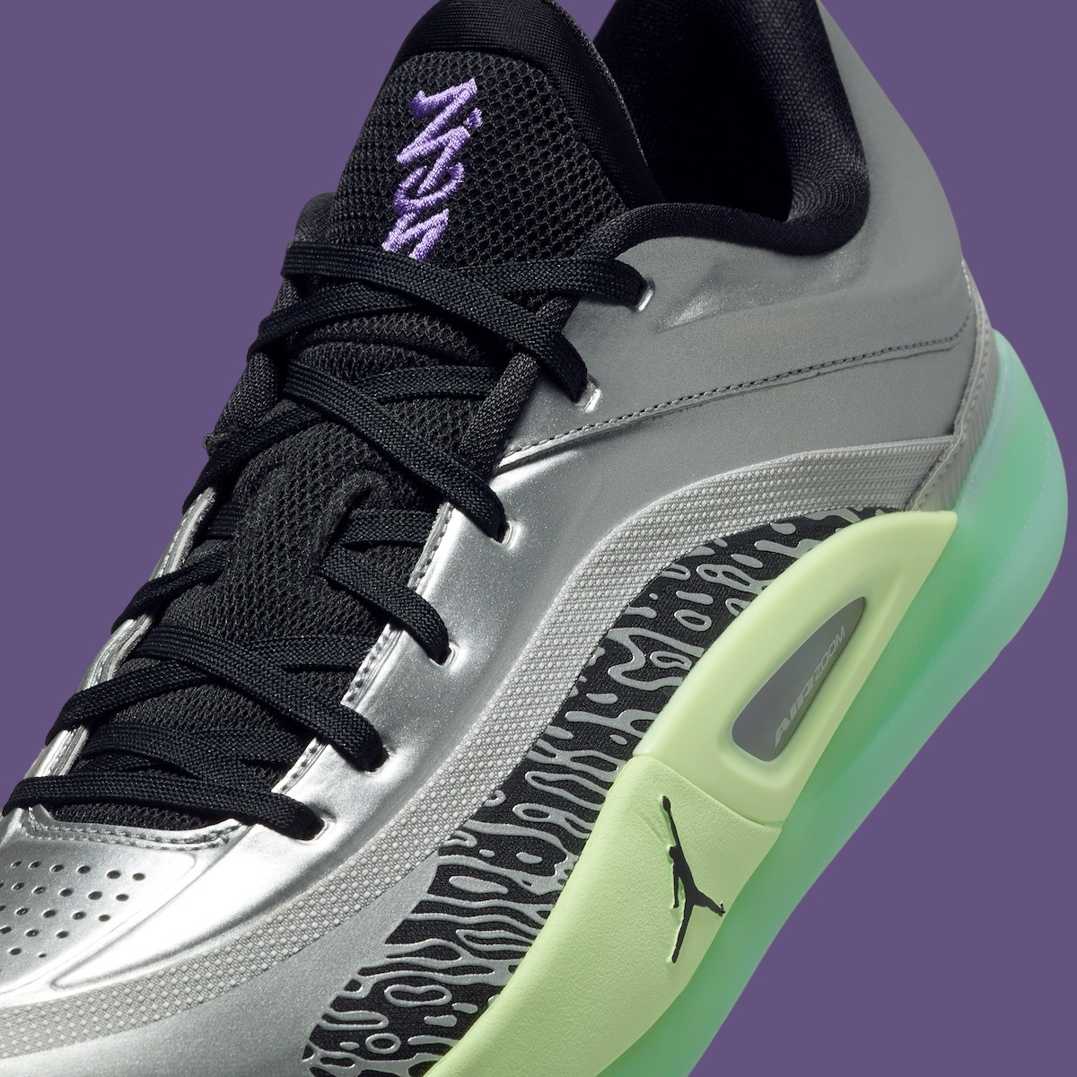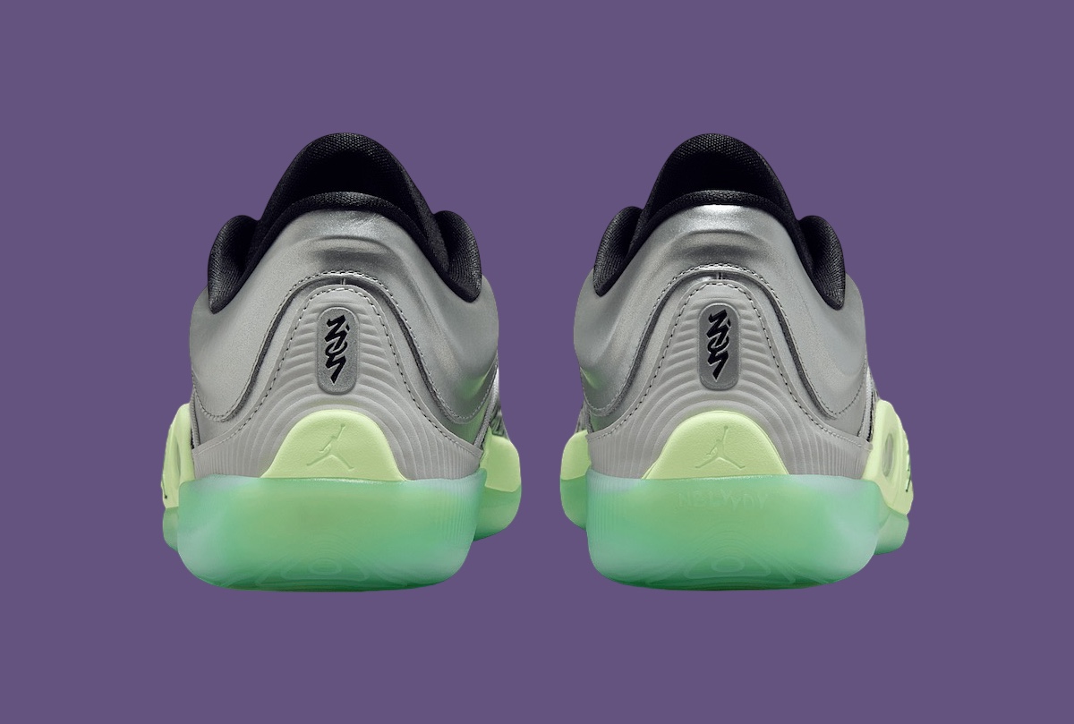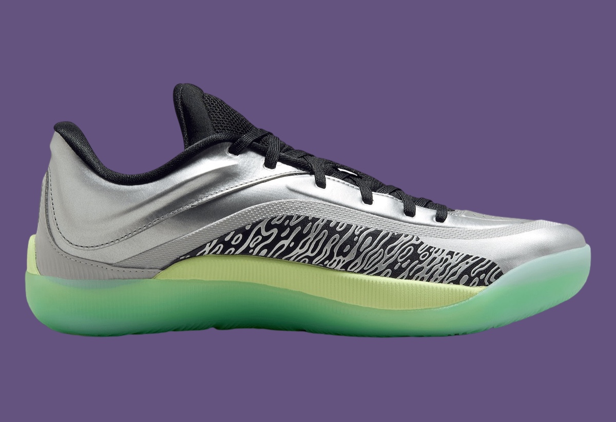 The Jordan Zion 4 debuts in an eye-catching “Grey Fog/Barely Volt” colorway. It features metallic silver overlays and a lime-tinted translucent outsole, blending boldness with versatility. Zion’s signature branding appears on the tongue, heel, and outsole, adding a personal touch to the modern design. The sneaker captures Zion’s dynamic personality while delivering on style and performance.