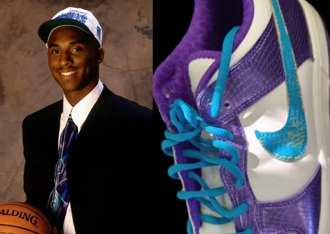 Built around the team that originally selected and traded him in 1996, the Kobe Bryant x Nike Dunk Low “Draft Day” features Teal shades on the upper, pulling directly from the Hornets’ identity while giving the Dunk a bold but grounded look. The connection feels intentional rather than symbolic.
