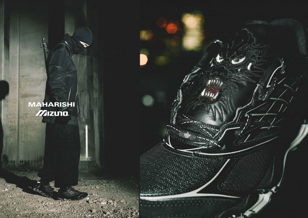 A darker, more intricate take is landing this week as Maharishi reconnects with Mizuno for another project built around one of the brand’s most recognizable runners. This time, the Mizuno x Maharishi Wave Prophecy LS arrives in a black-led palette with olive touches, dragon embroidery on the tongue, and a layered build that pushes the silhouette deeper into premium territory.