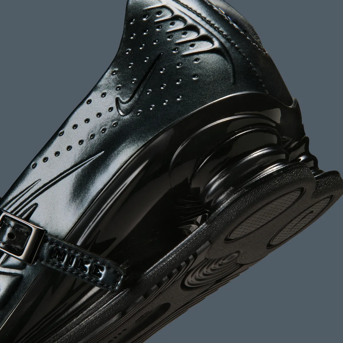 However, the spotlight shifts to the newly introduced Shox Z Calistra. This model blends a ballet-inspired silhouette with performance-driven Shox tooling, creating a unique hybrid that feels both delicate and technical. Design cues nod to the classic Nike Shox R4, especially around the heel and spine, while the upper adds abstract molded textures and a slim leather strap across the forefoot for a refined, almost dance-like finish.