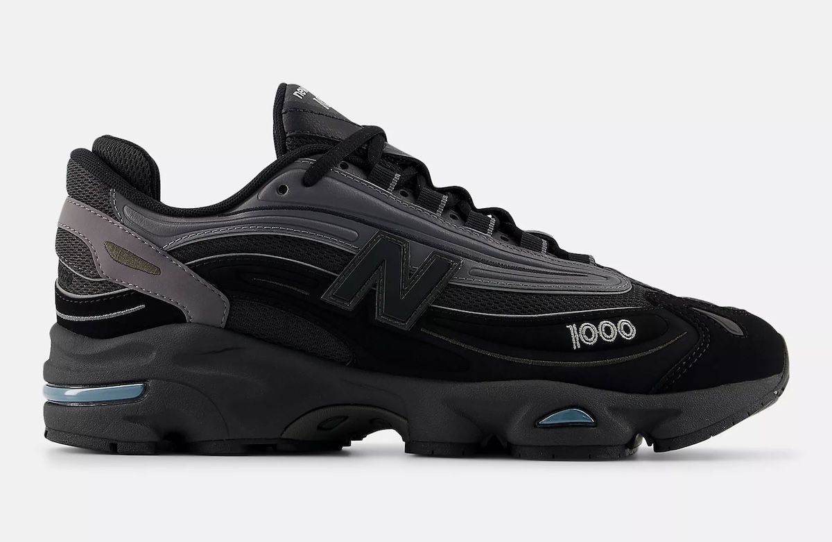 The New Balance 1000 “Black/Castlerock” arrives as a sharp callback to early-2000s performance design.