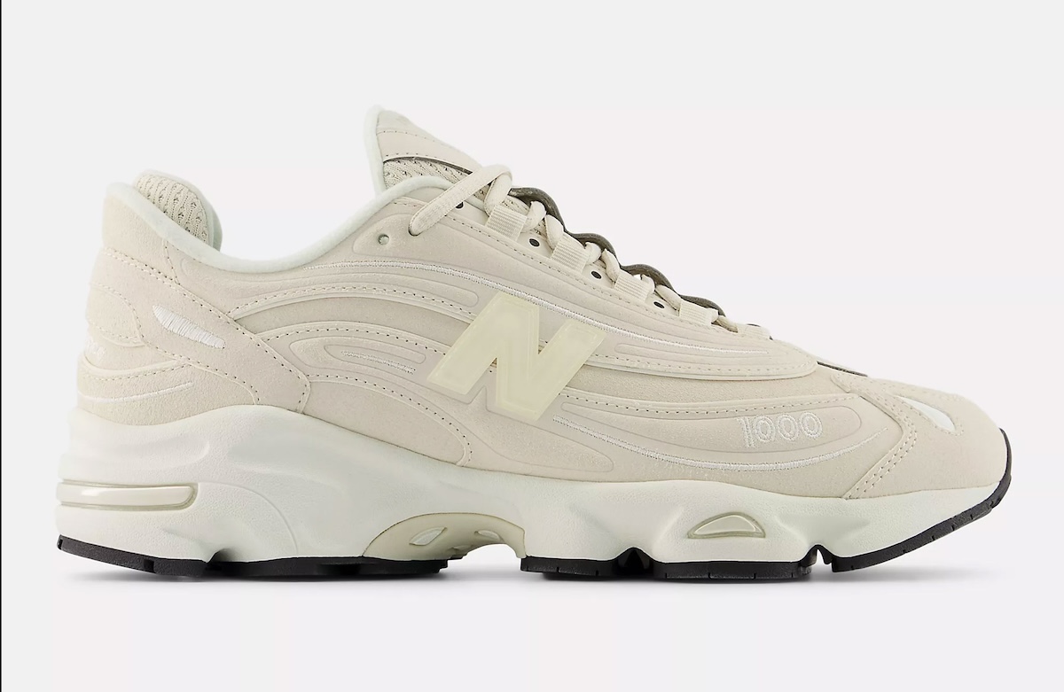 The New Balance 1000 “Linen” is muted with a cream-forward color scheme that tones down the silhouettes sinister aesthetics without sacrificing its futuristic appeal.