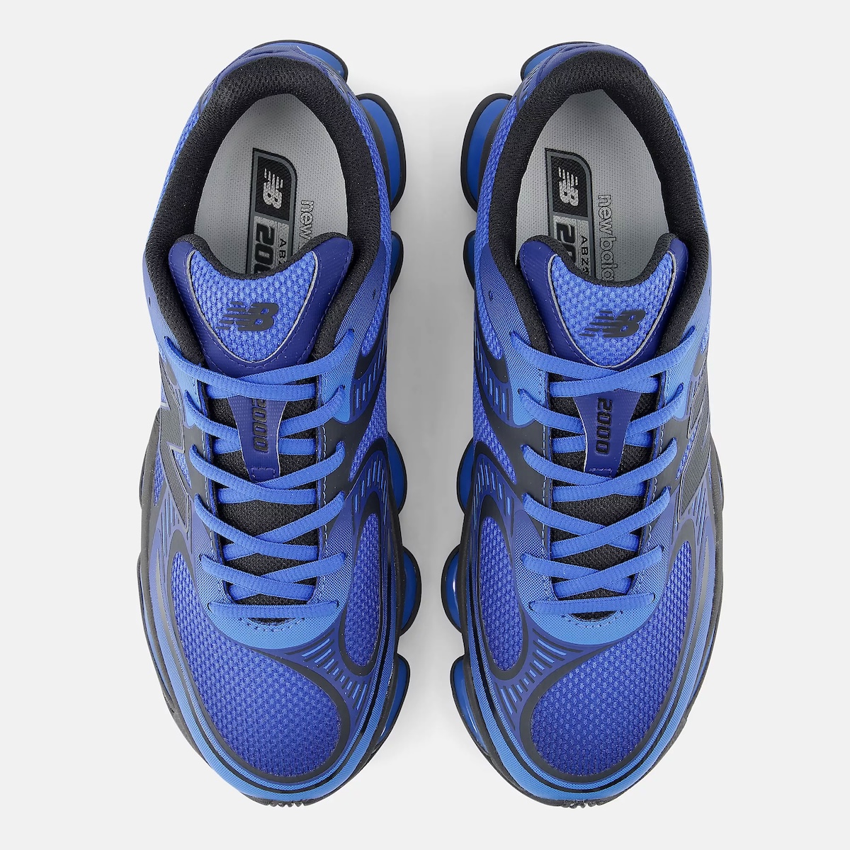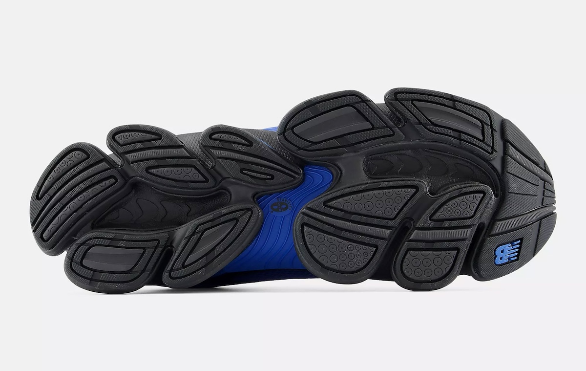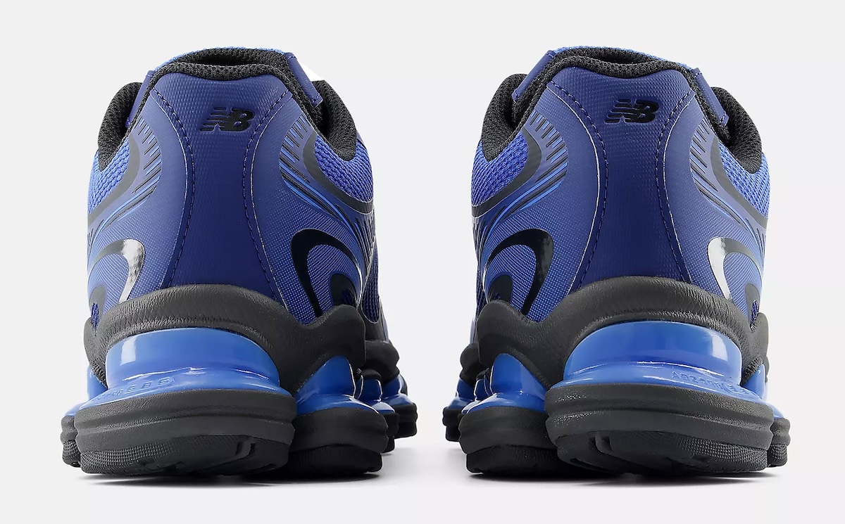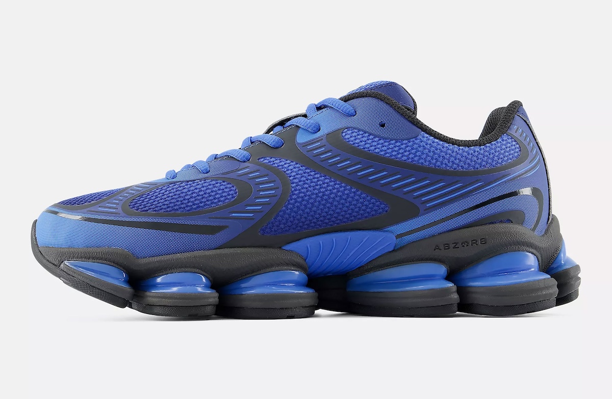 Underneath, the cushioning setup defines the experience. Segmented ABZORB pods in blue sit within a black frame, creating a podular midsole that stands out visually while reinforcing impact protection. That approach signals a continued push toward experimental tooling within New Balance’s lifestyle runners, where comfort and design now carry equal weight.