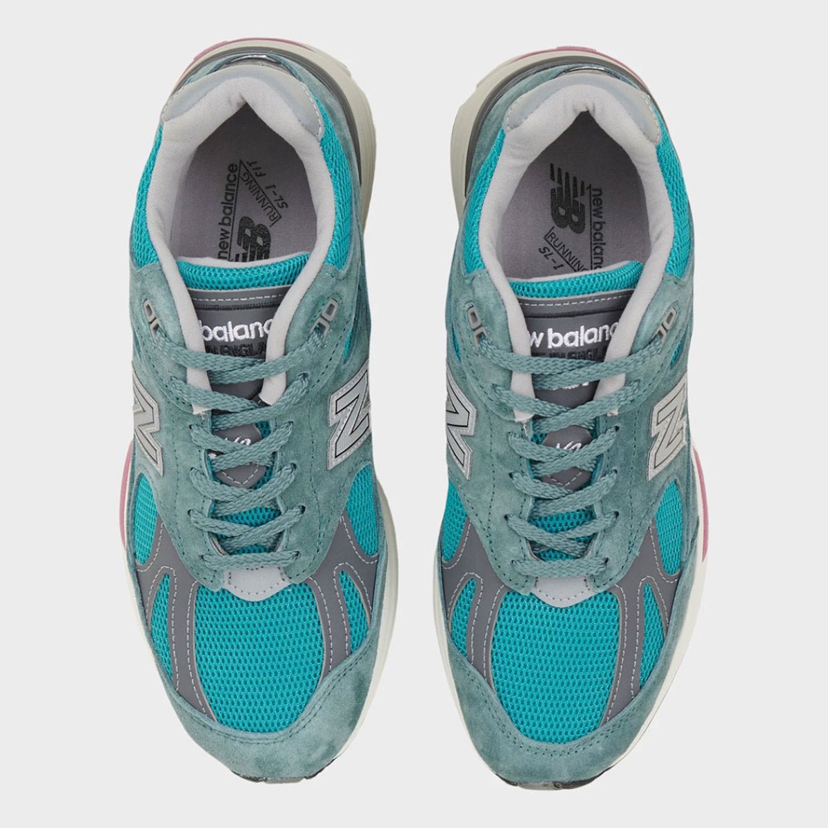 Porcelain suede wraps the upper with a soft, washed finish that feels calm and deliberate. Green Trooper mesh breaks through the base, giving the shoe just enough energy without disrupting its tone. Grey synthetic overlays tighten the design and sharpen the structure.