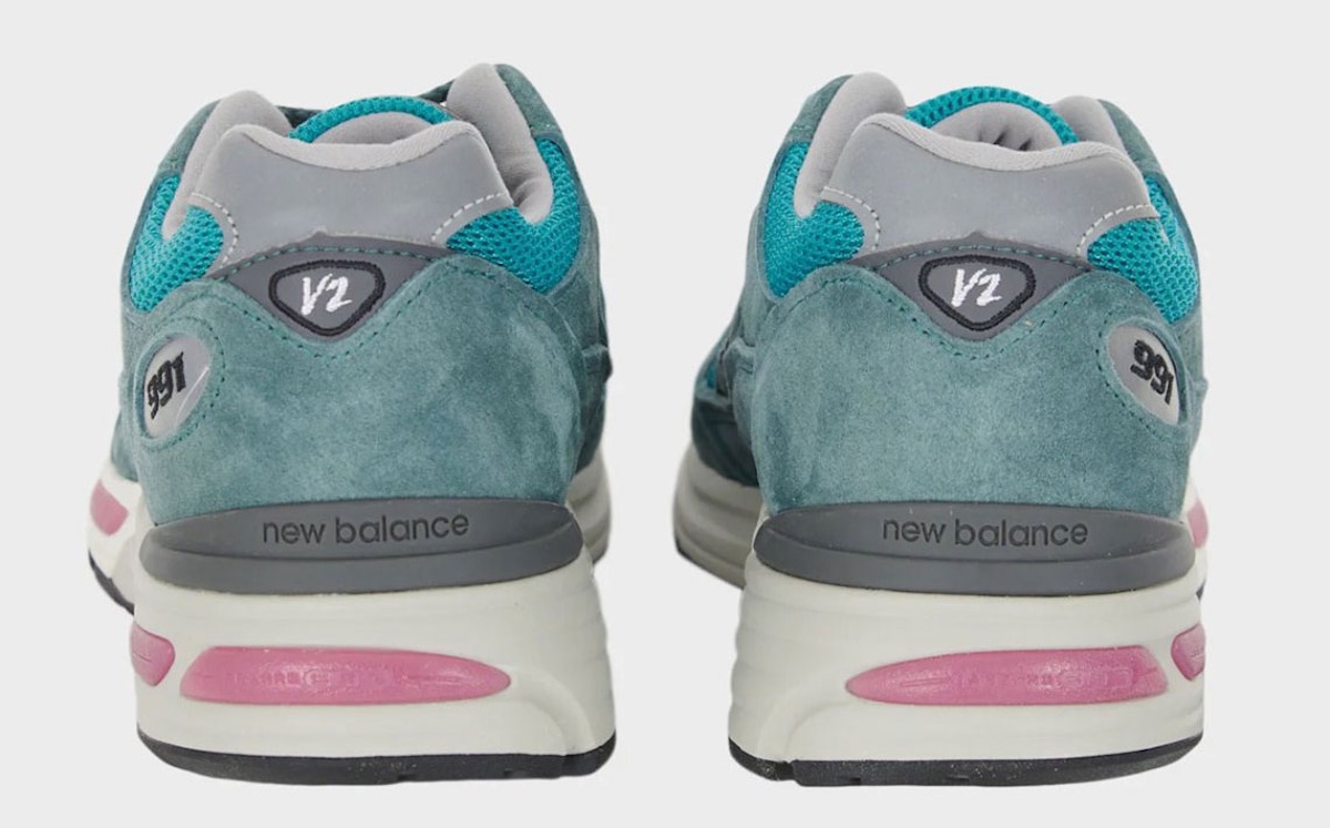 Branding stays quiet. “991” at the heel and the small “v2” hit confirm the update without demanding attention.