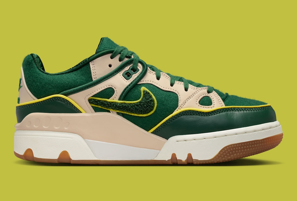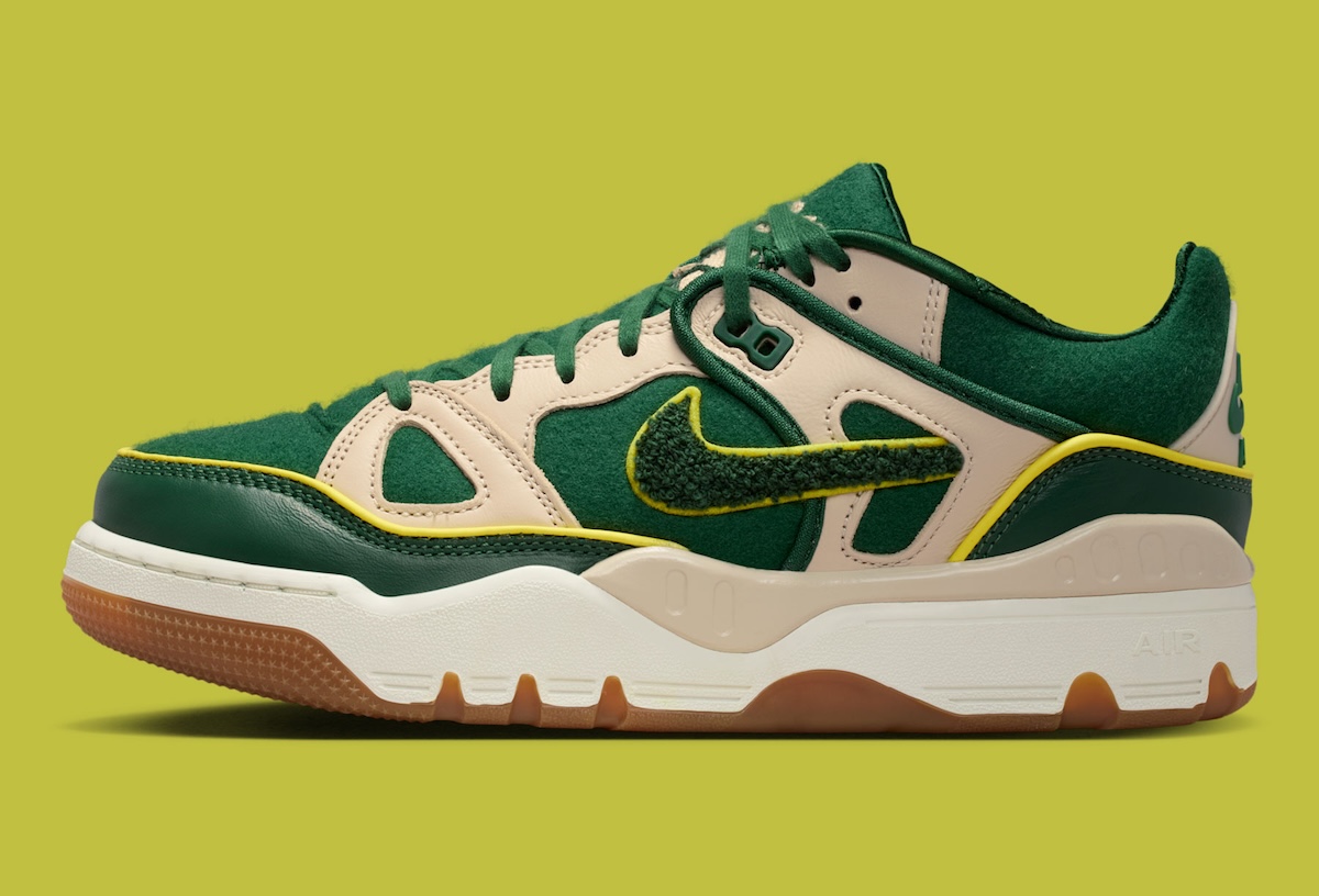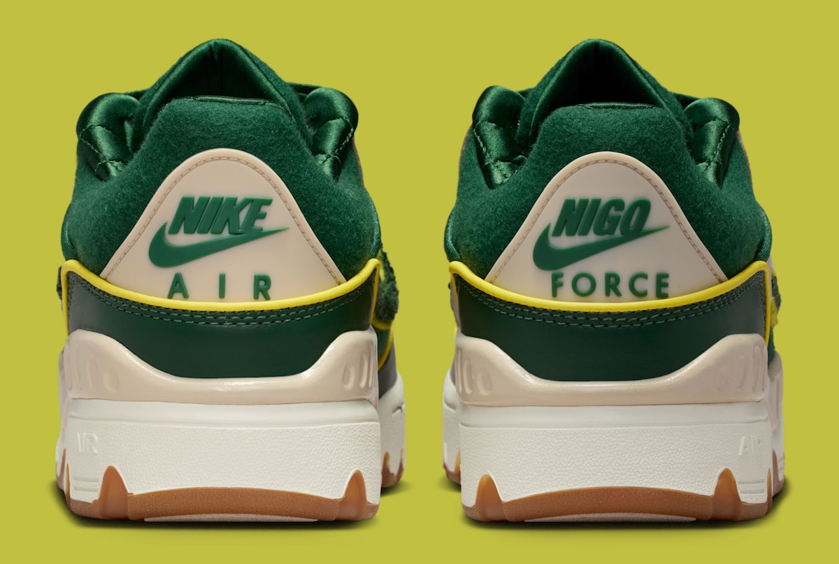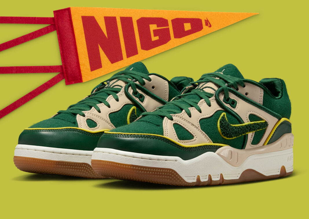 College-inspired colorways continue to shape Nike’s early 2026 lineup, and the NIGO x Nike Air Force 3 “Forest Green” fits that direction with intention. Following the Georgetown-themed, this pair turns toward Nike’s Oregon roots using green, yellow, and tan. The palette connects brand history with campus culture, giving the College Pack a stronger sense of place.