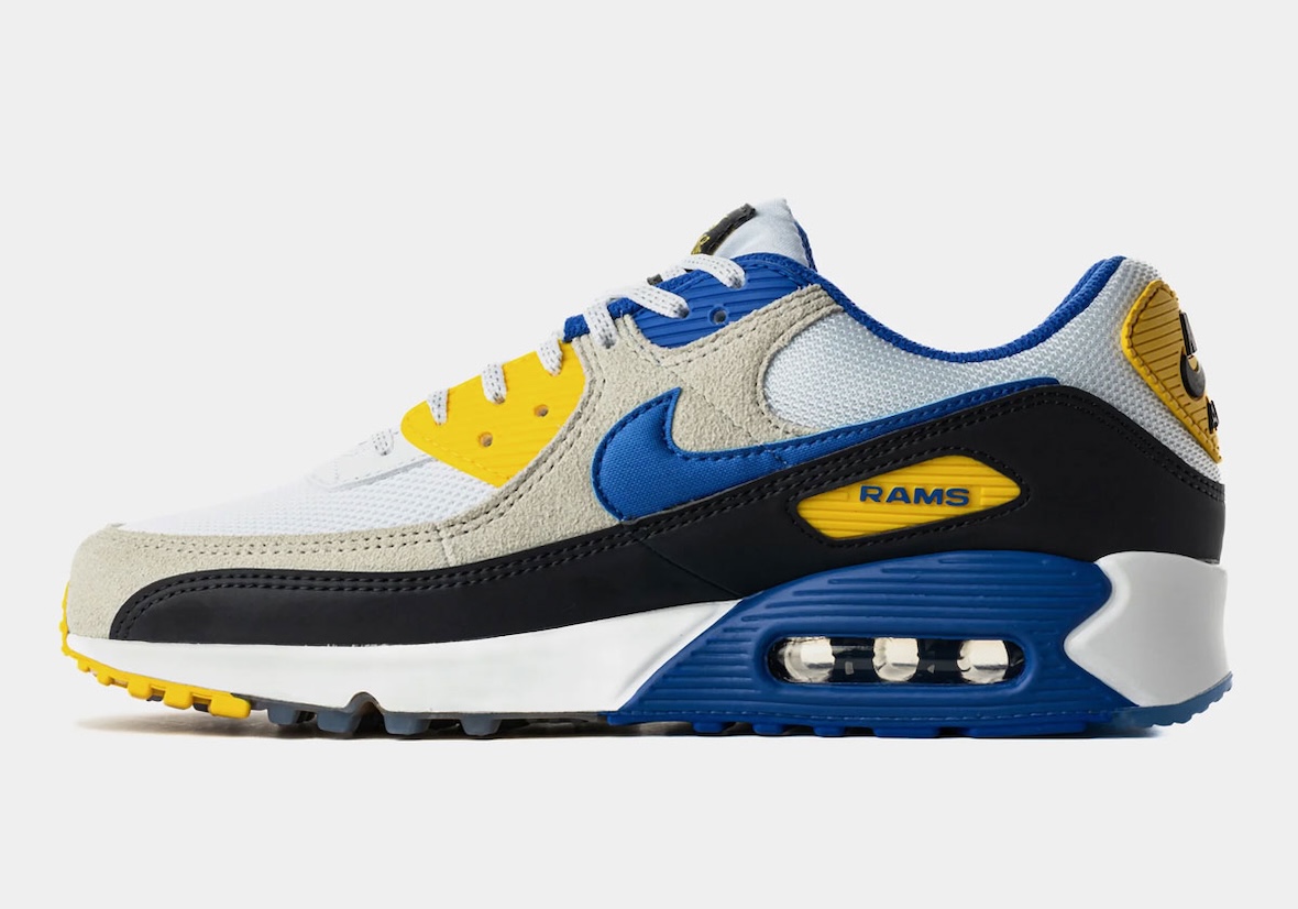 Nike’s Air Max 90 “NFL Rivalry” Pack is a celebration of the fierce West Coast rivalry between the San Francisco 49ers and Los Angeles Rams, crafted in two colorways inspired by the teams.