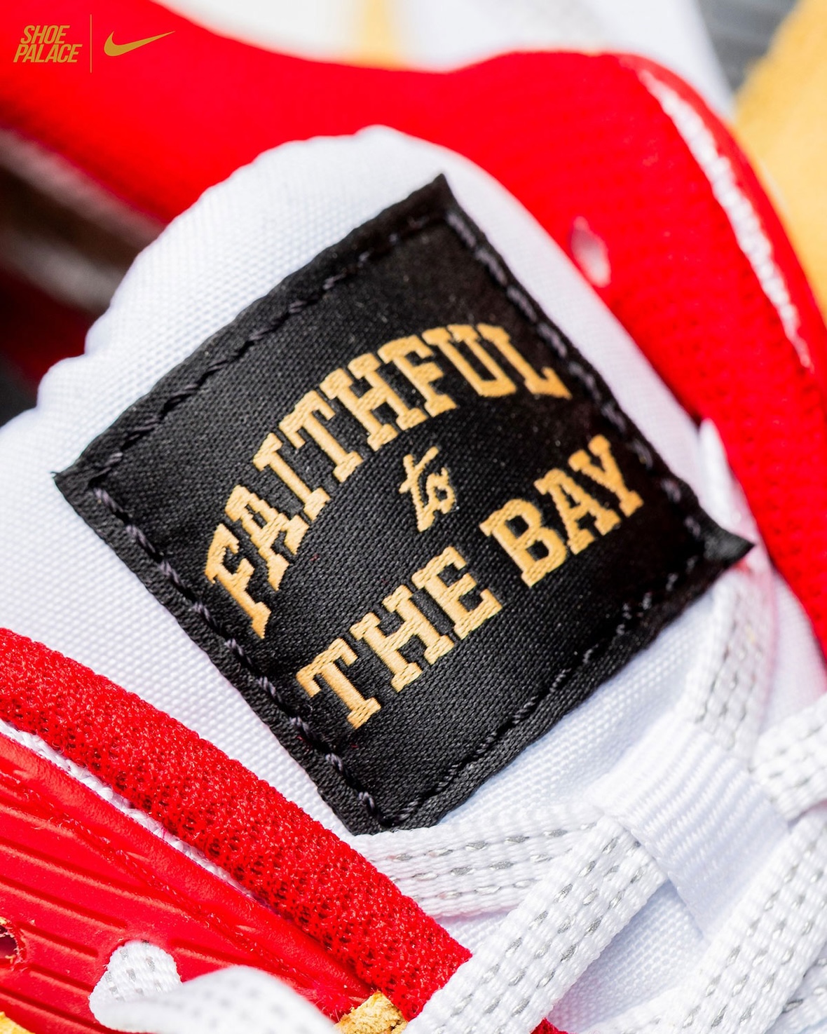 The “San Francisco 49ers” model is true to the team’s history and tradition, featuring gold suede overlays, red accents, and a “Faithful to The Bay” tongue label that enthusiasts will notice and admire. The insole proudly displays “49ERS.”