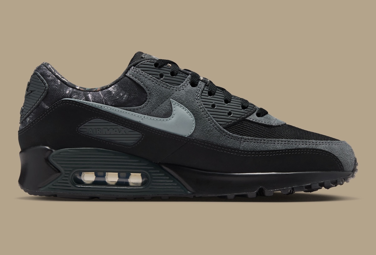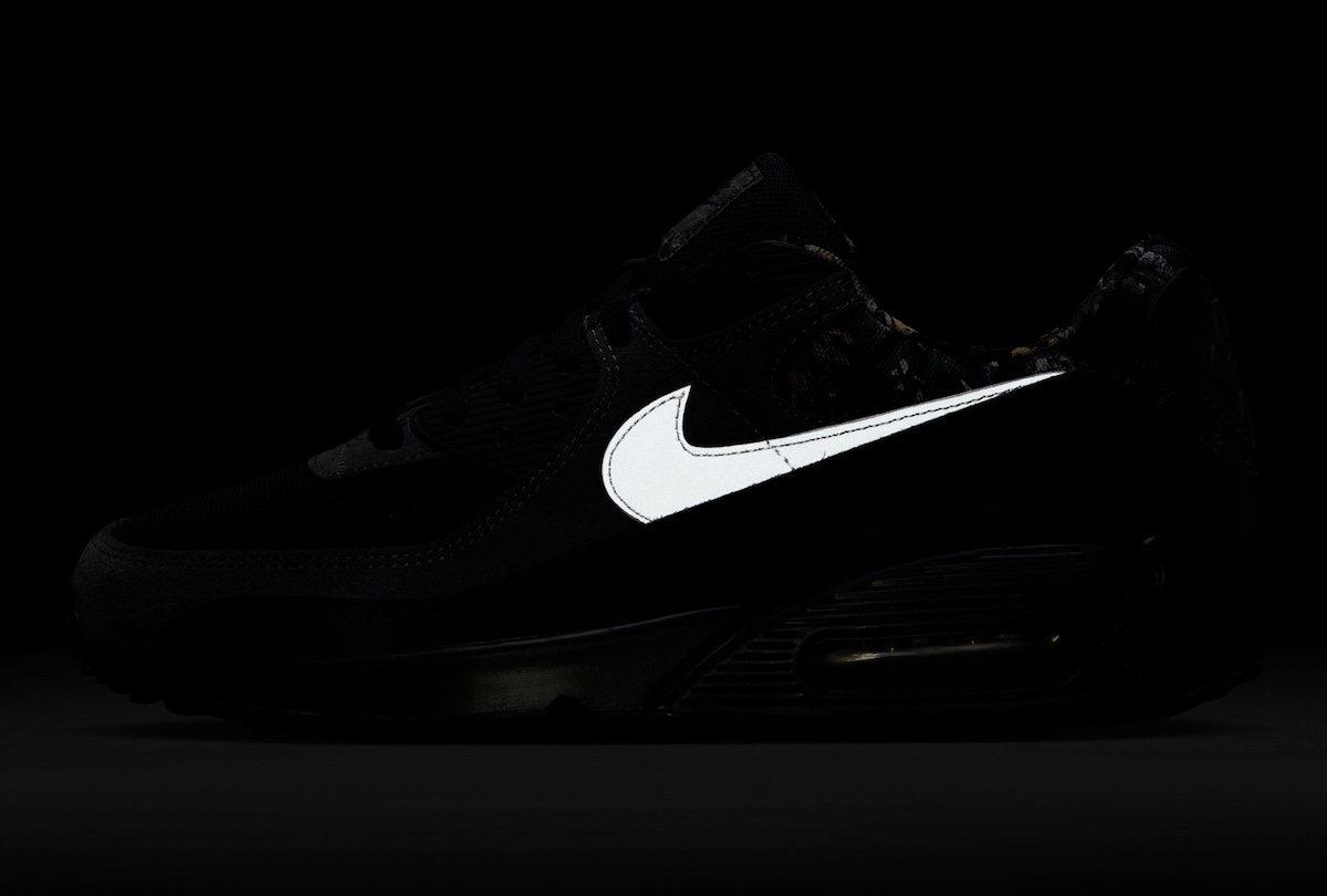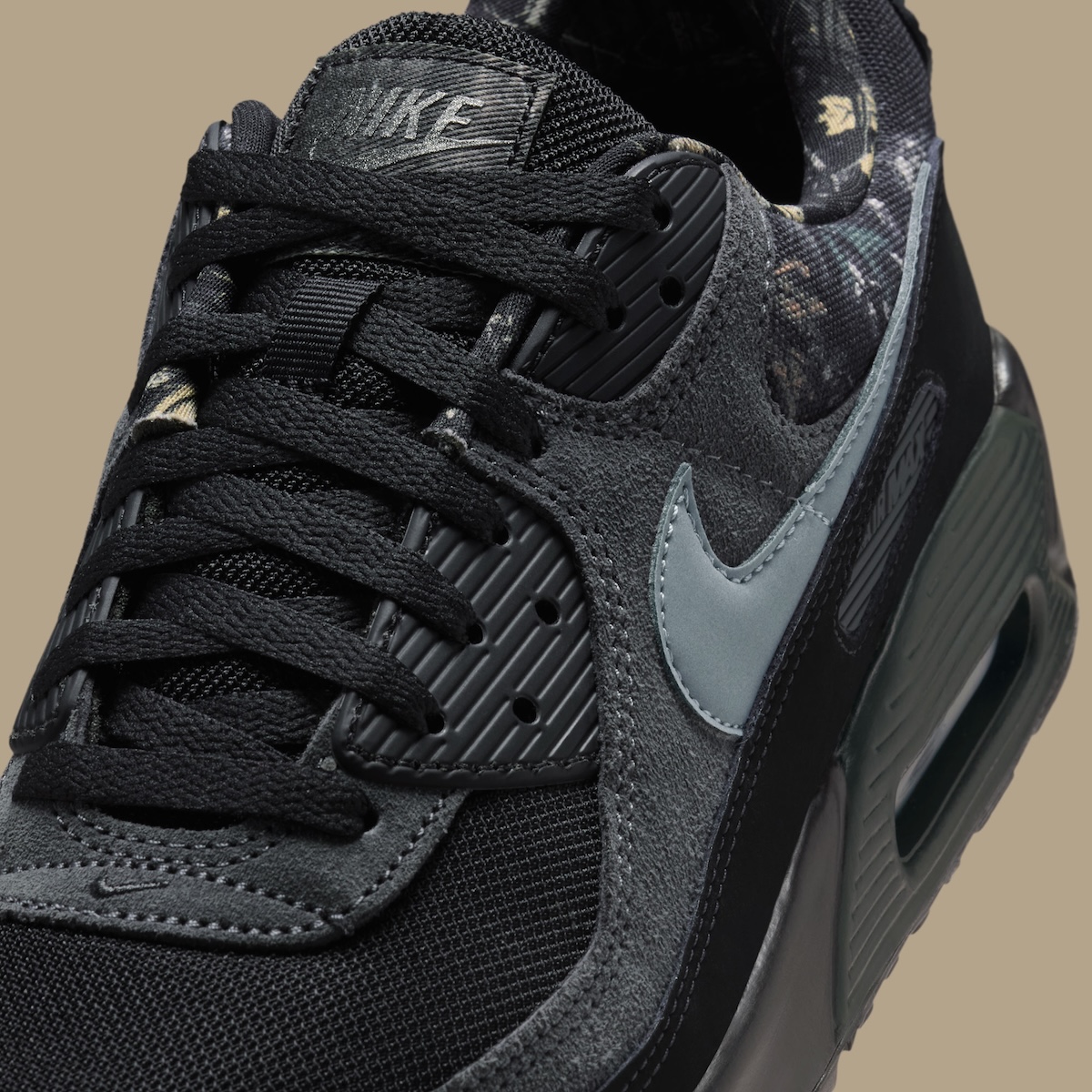 Dropped Grey TPU panels and a desaturated midsole wedge help build on that. Black surrounds everything else on the sole unit to balance it all out. Lastly, a reflective Metallic Cool Grey Swoosh gives the shoe a subtle boost when light hits at night. This camo Air Max 90 recalls previous woodlands-inspired Nike footwear, but still manages to keep it pretty city-centric.
