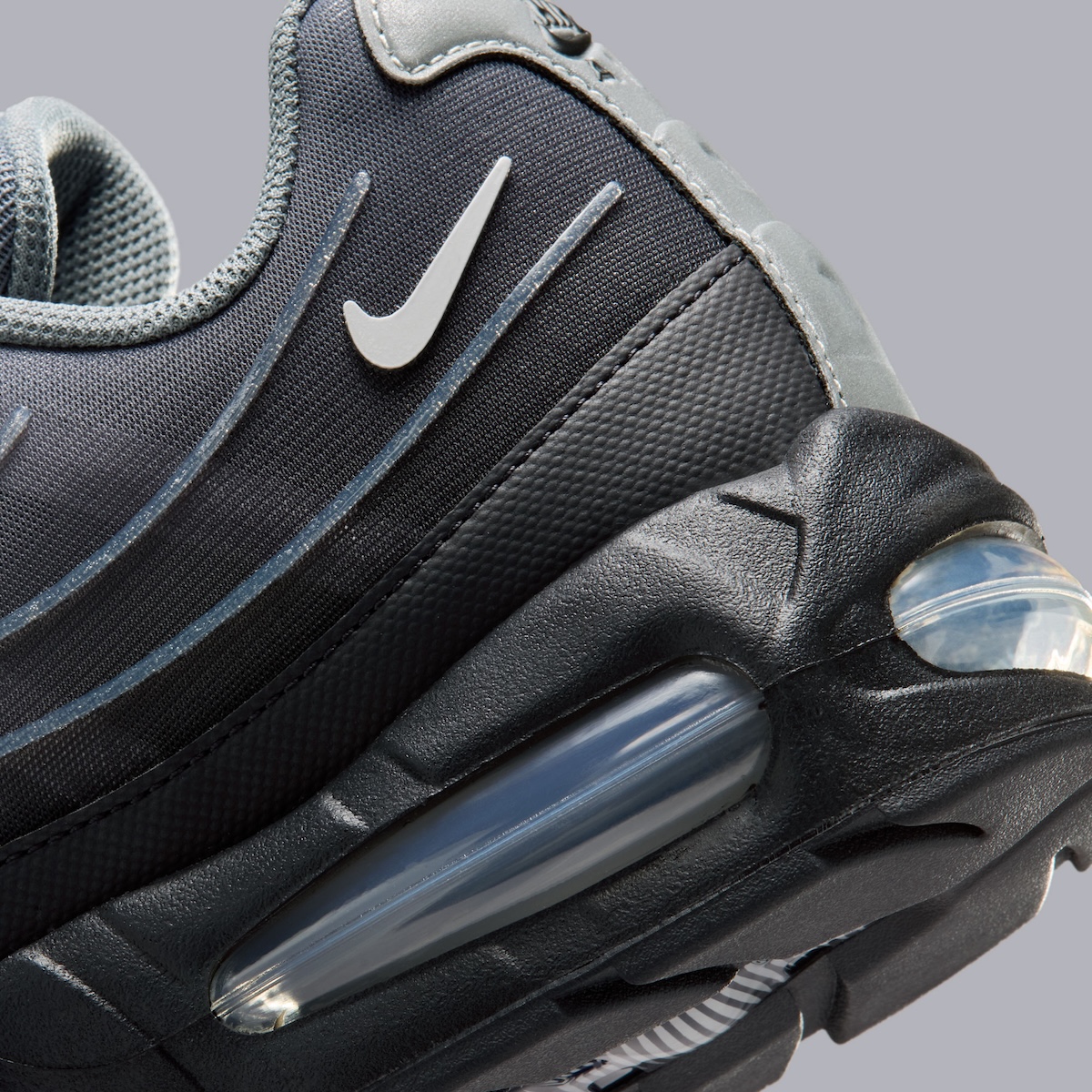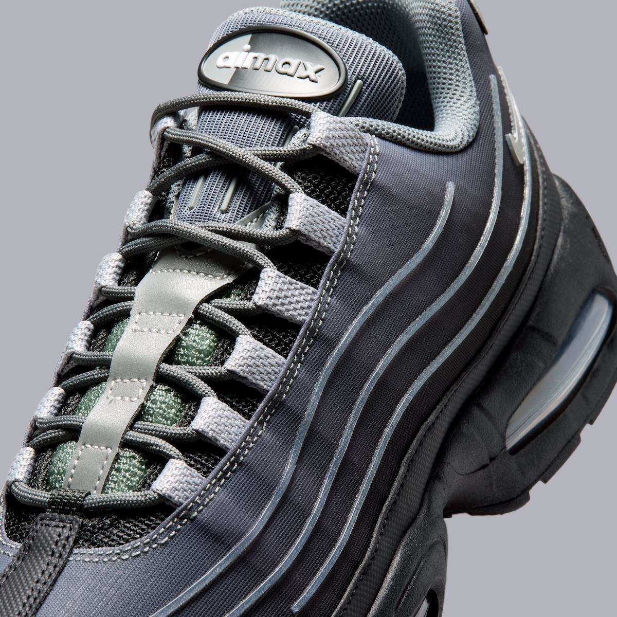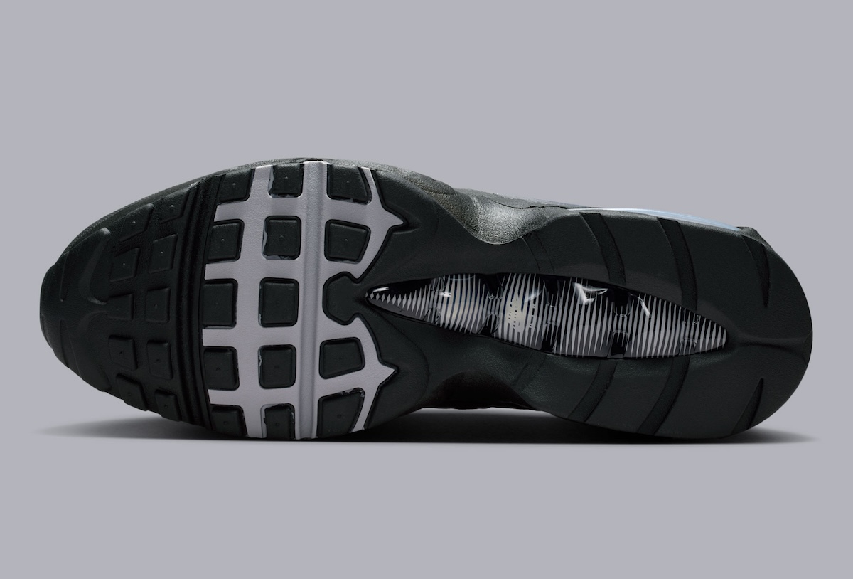 The updated build still keeps several key Air Max 95 details in place. A classic oval Air Max tongue badge sits up front, while small white Swooshes appear near the heel. Silver heel tabs, visible Air units, and a black outsole complete the look with a mix of retro running DNA and futuristic styling.