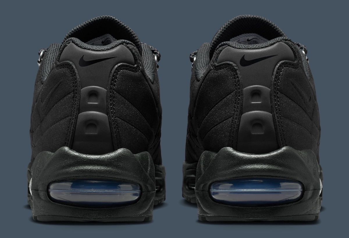 The upper carries a gritty texture that adds depth without forcing attention. Subtle branding keeps things calm, while the darkened Air units ground the design. This Black Air Max 95 feels intentional, not experimental.