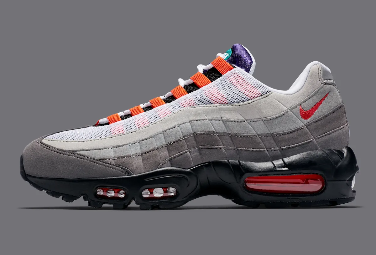 First introduced for the models 20th Anniversary, the Air Max 95 Greedy blended four essential OG colorways into one mismatched pair. It followed the same mash-up blueprint seen in Nike’s “What The” series, but with a cleaner, more curated approach. Each shoe mixes elements from the “Neon,” “Grape/Aqua,” “Safety Orange,” and “Hot Red,” creating a look that feels both nostalgic and playful. This 2026 version keeps that formula while adding improved tech underfoot for a smoother ride.
