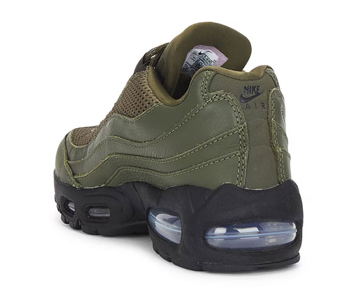 The Cargo Khaki/Black–Medium Olive version goes darker and more utilitarian. Olive leather and green mesh blend together cleanly, while the black midsole cuts through the upper and sharpens the profile. The Jewel Swoosh stands out more here, but still feels restrained.