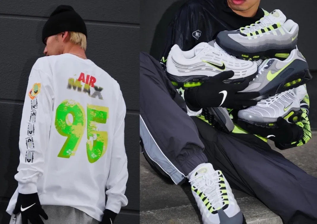 Alongside the footwear, Nike is also rolling out matching apparel. The range includes Y2K-inspired jerseys, track jackets, tees, and long sleeves, all featuring bold neon hits and classic Air Max branding. The styling leans into nostalgia while still feeling current, aligning with the ongoing revival of early 2000s aesthetics.