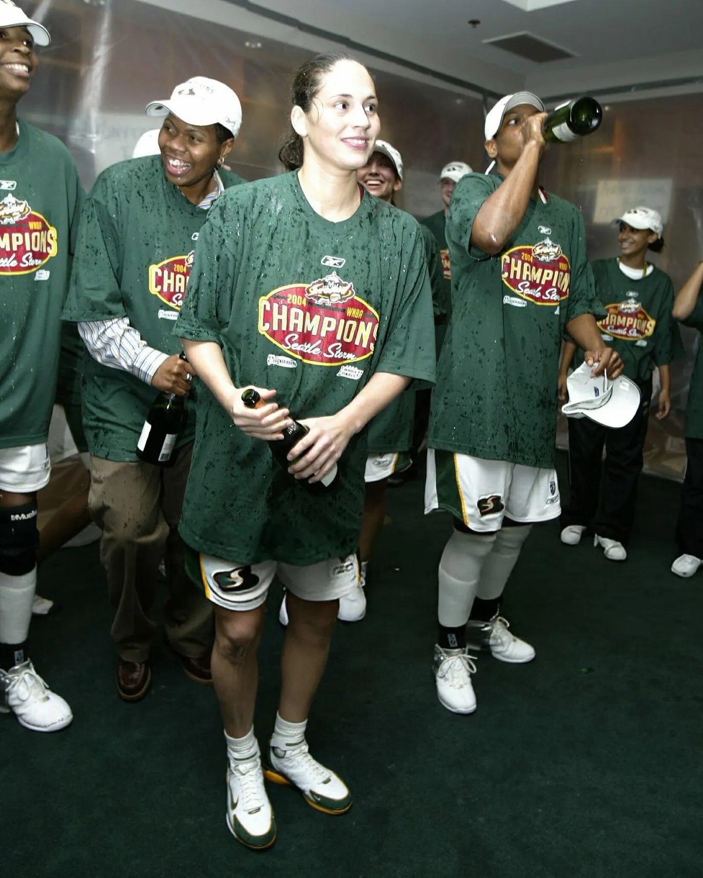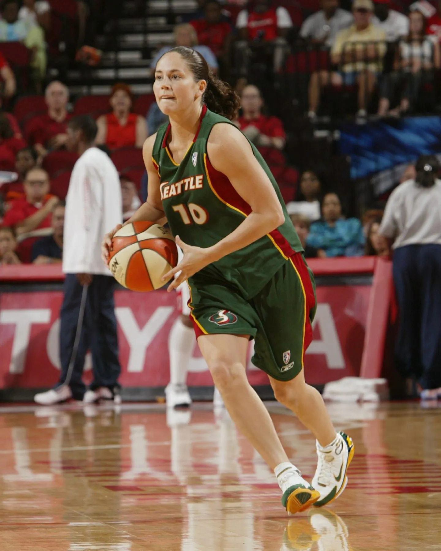 Dressed in White, Deep Forest, and Canyon Gold, the colorway perfectly channels the Storm’s classic palette. That crisp blend of leather, glossy overlays, and metallic trim hits differently knowing it marked Bird’s first title — and now lives forever on her bronze statue outside Climate Pledge Arena, where the detailed sculpture even includes the “BIRDY” etching on the ankle strap.