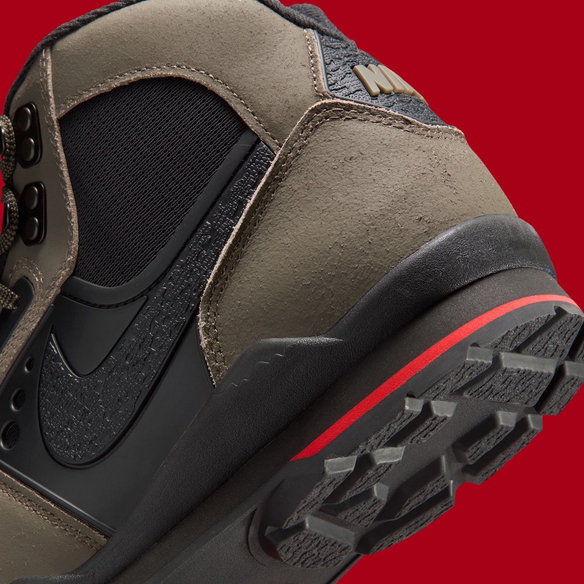 Black TPU panels run along the sides and heel, locking in structure without pulling focus. The Swoosh blends into that setup, which keeps branding low-key. Metal lace hooks at the collar push the hiking influence further, a detail many modern pairs avoid.