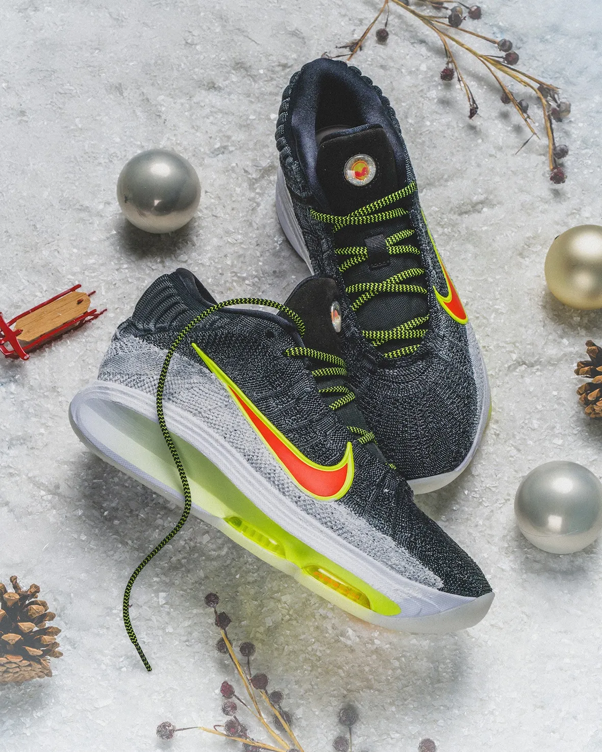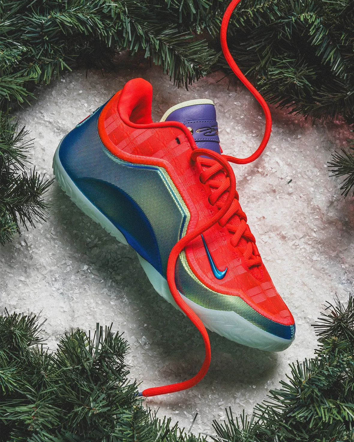 Meanwhile, Giannis Antetokounmpo brings a purple-heavy Freak 7 balanced by seasonal reds and greens along the outsole. The KD 18 takes a quieter route, using light blue tones that feel wearable well beyond December, an approach that suits Kevin Durant’s understated style.