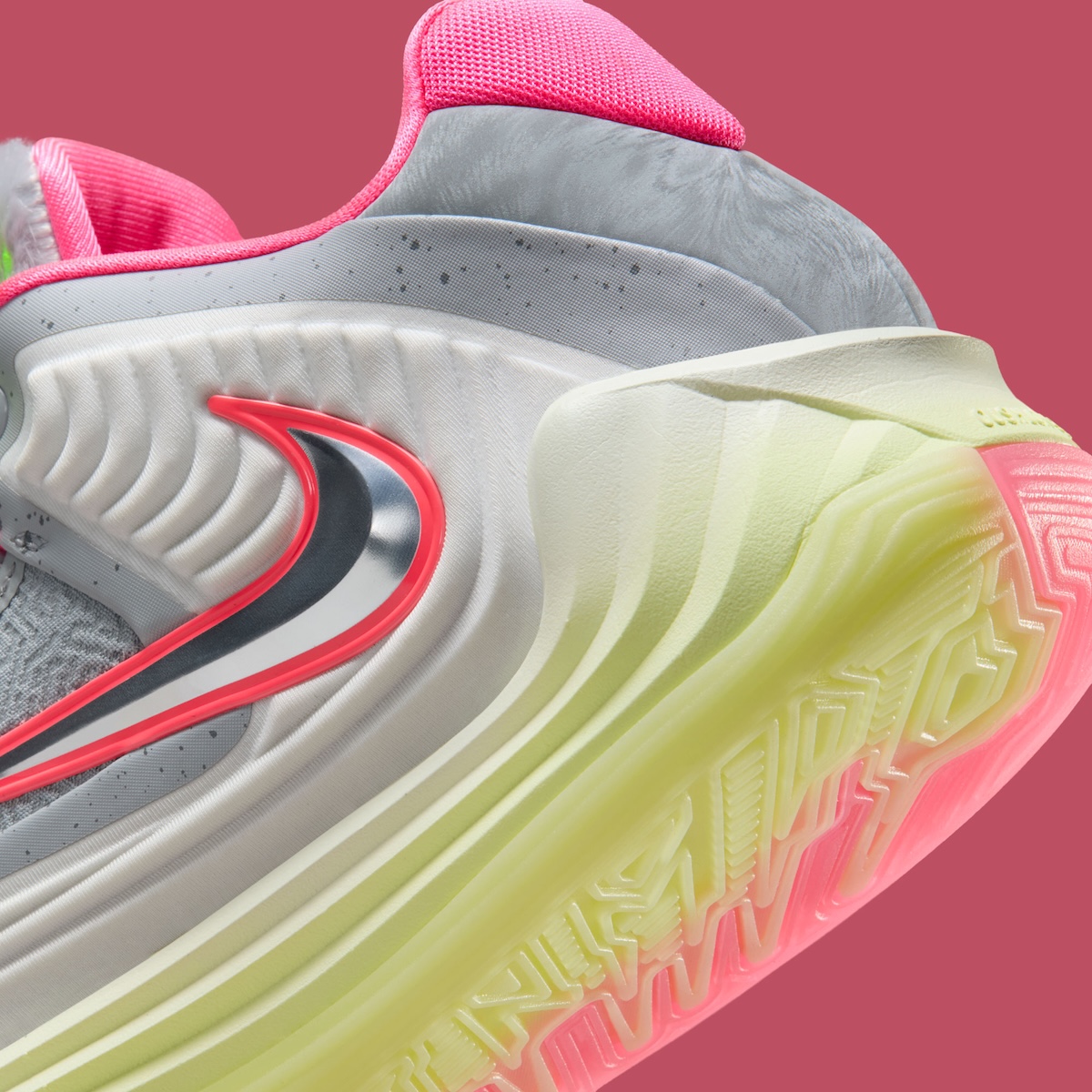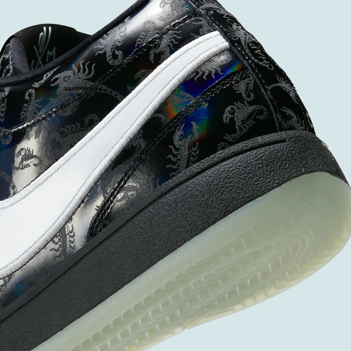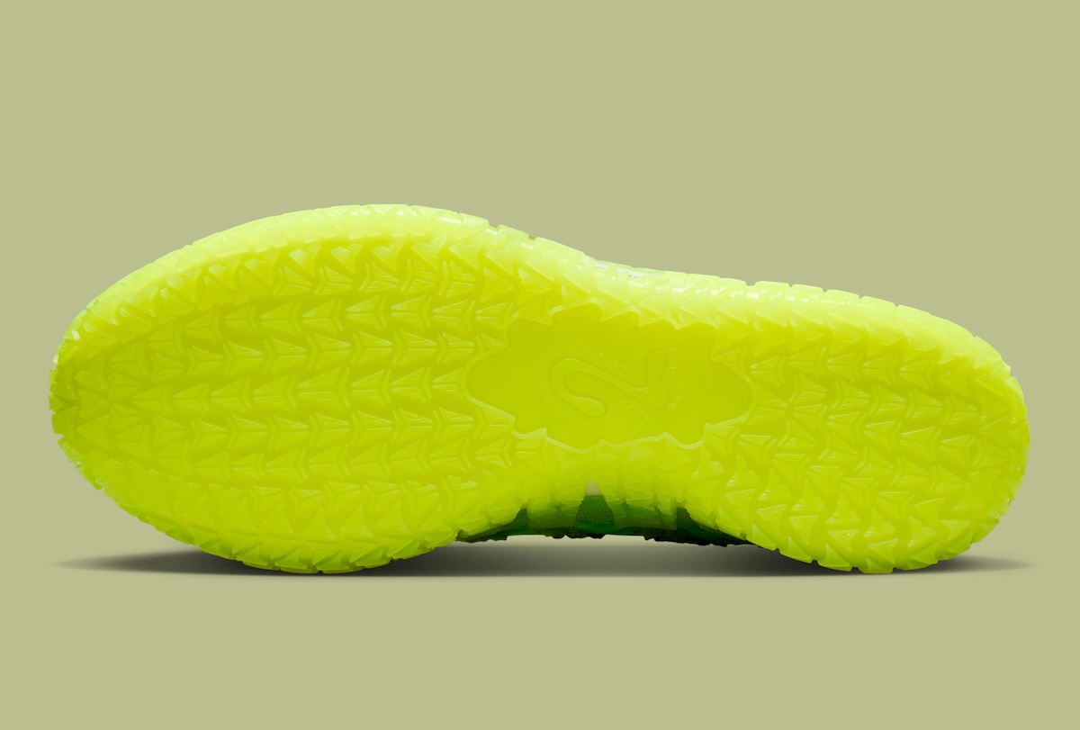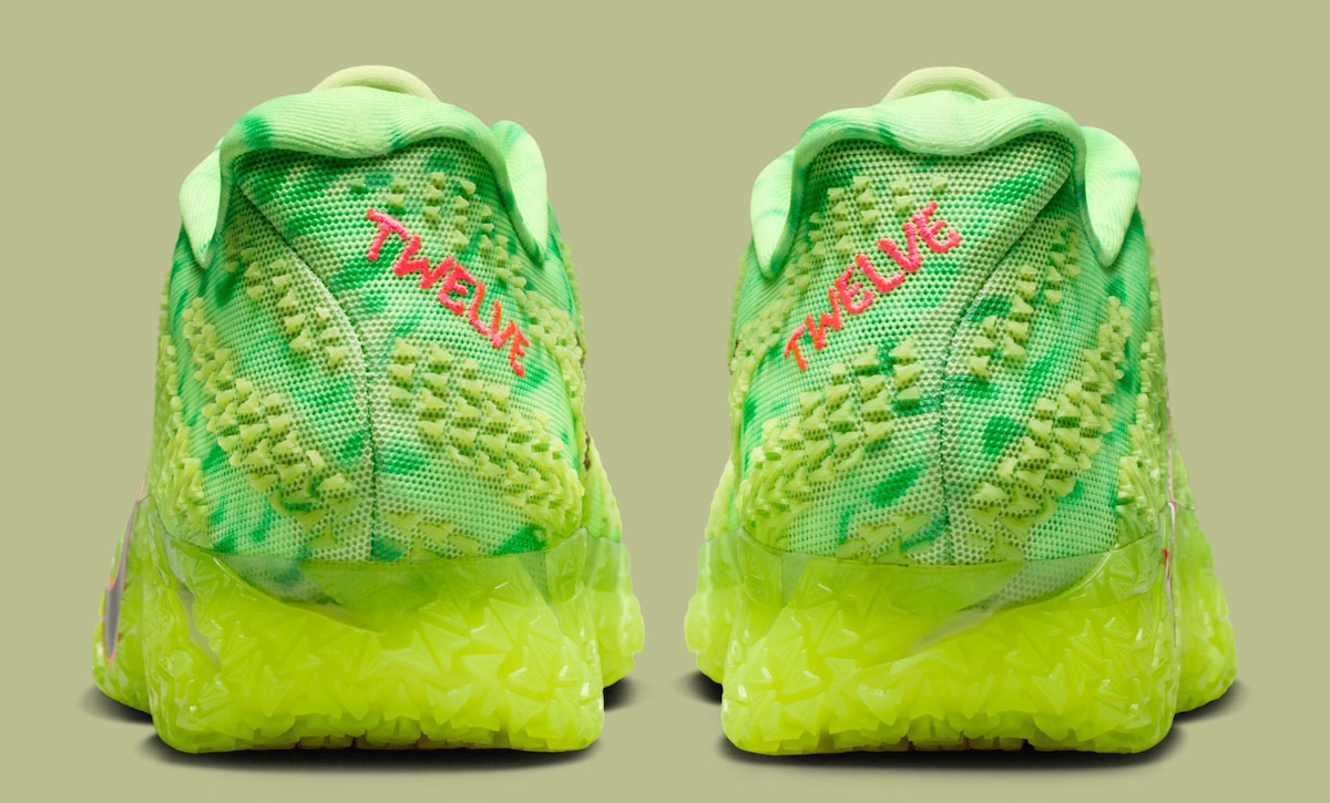 Halloween takes on a pumpkiny orange tone on Victor Wembanyama’s G.T. Hustle 3, decked out in flame-like foil overlays. Ja Morant’s Ja 3 trades in the dripping blood of a zombie apocalypse for a radioactive glow up, with a neon green upper and glow-in-the-dark accents. Devin Booker’s Book 1 takes a more “incognito” approach, embracing a sleek “Scorpion” (Scorpio) theme with black patent overlays layered in holographic detailing. Kevin Durant’s KD 18 “Slim Reaper” checks off Durant’s moniker with bone-themed graphics creeping up the upper, while Giannis’ Freak 7 “Shapeshift” jumps on the monster bandwagon with knobby fur textures and neon accents.
